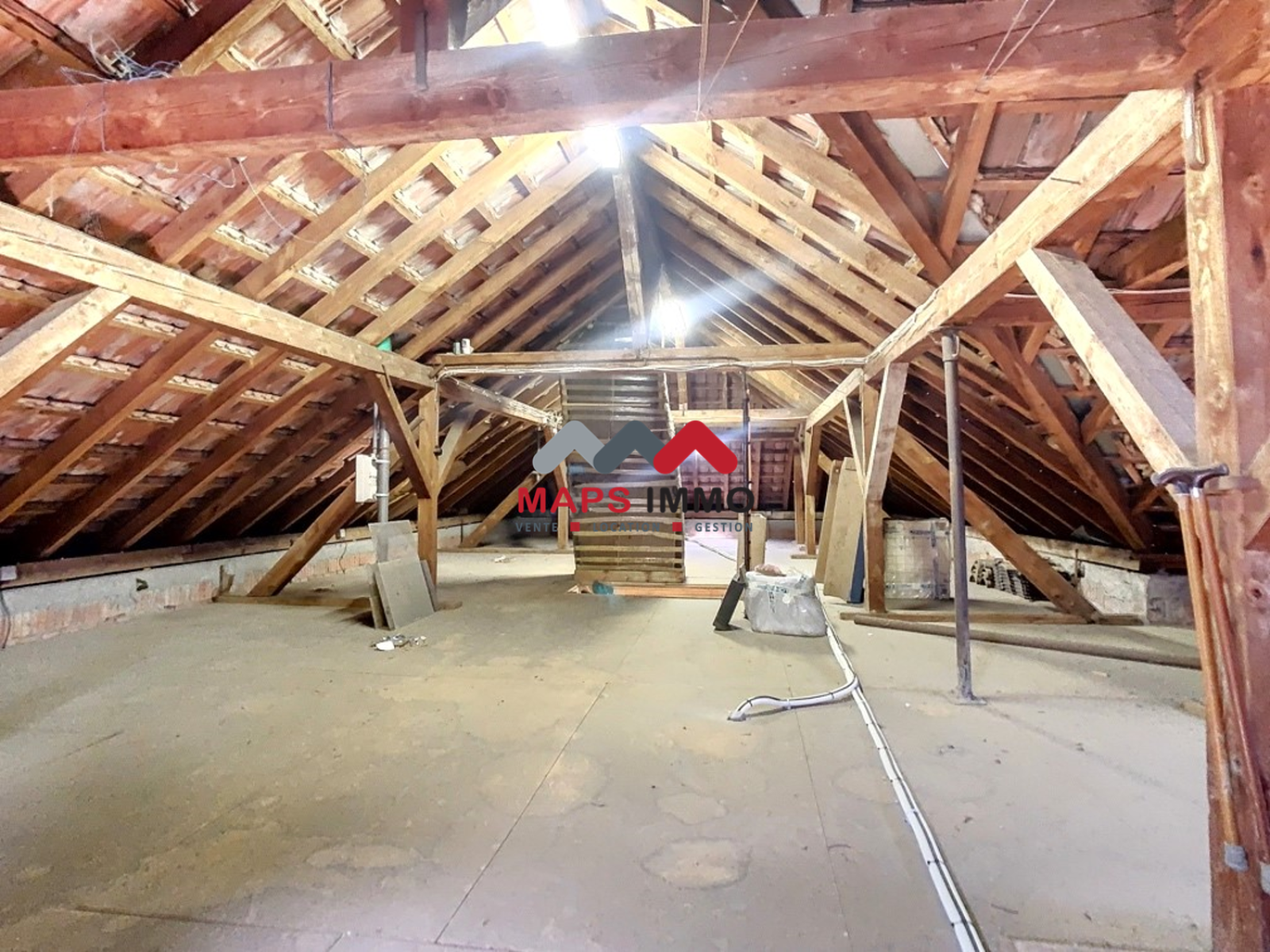Un immense espace sous combles, aménageable et accessible par escatrappe, ajoute un potentiel considérable pour divers projets.