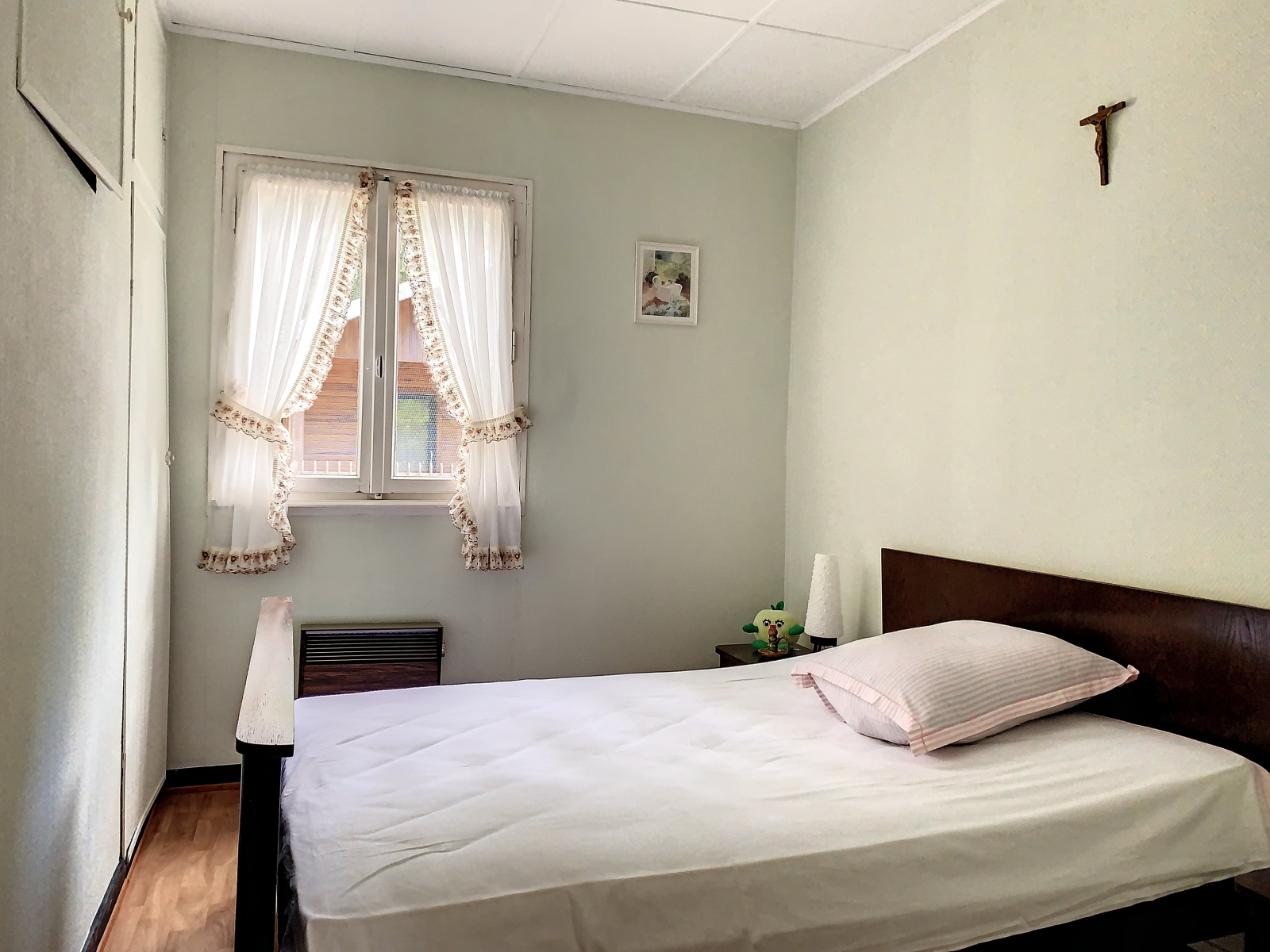 A l'étage : 2 chambres, dont une avec balcon, bureau.
