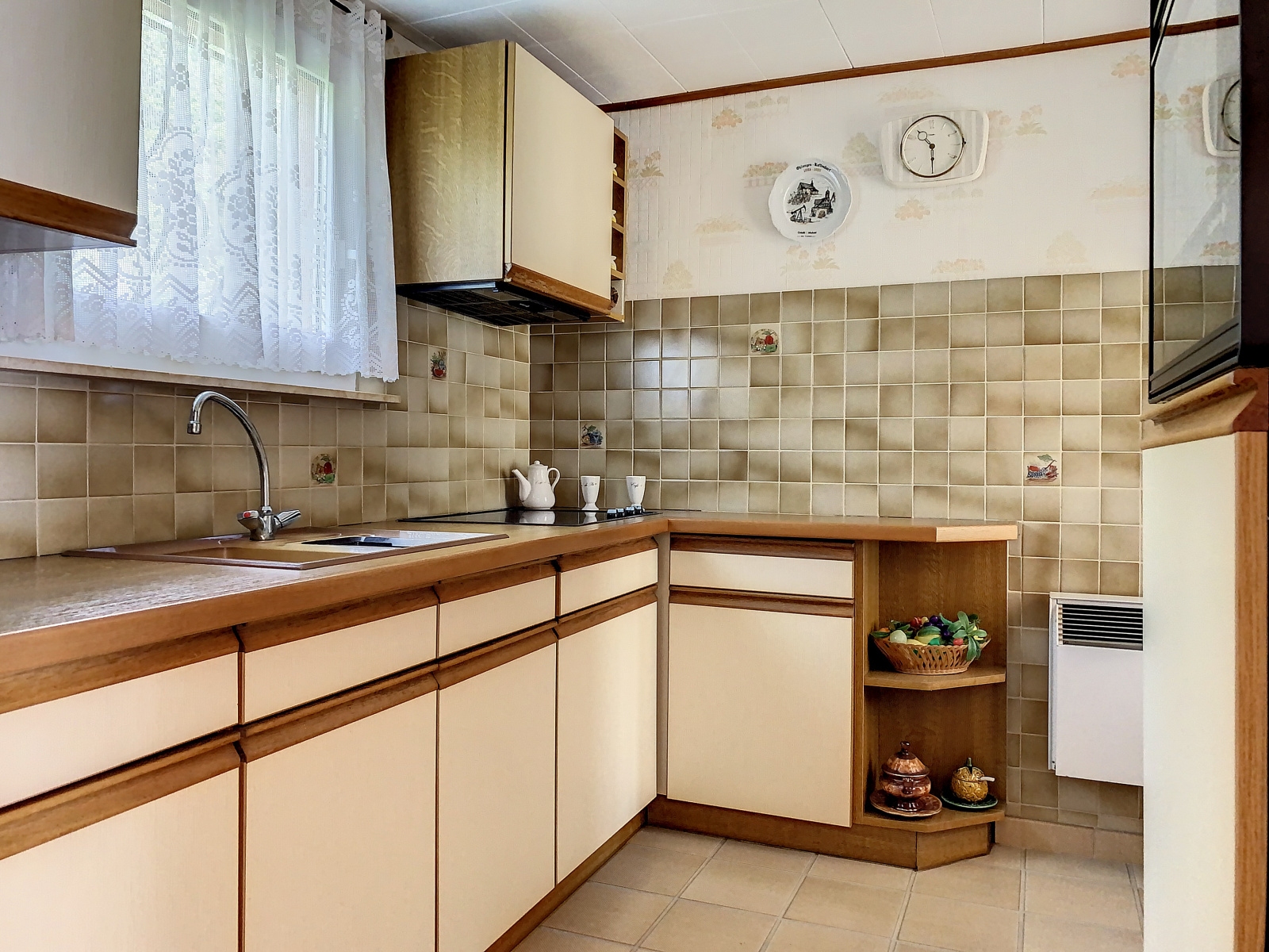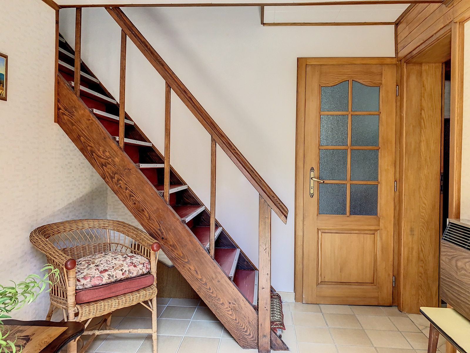 Au rez-de-chaussée : entrée, espace salon/séjour avec accès à la terrasse, cuisine semi-équipée, salle de douche, wc.