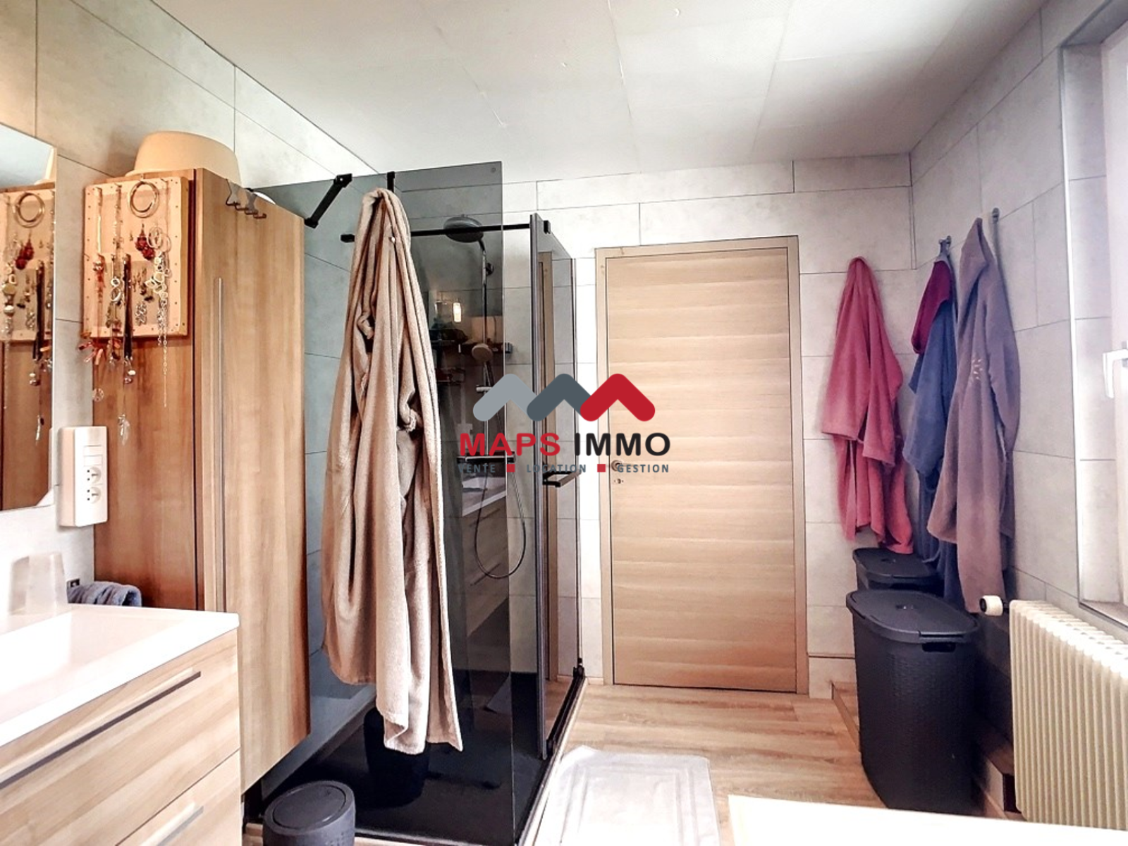 - À l'étage : Un vaste palier offrant la possibilité d'aménager un bureau ou tout autre espace de votre choix, une salle d'eau élégante dotée d'une douche à l'italienne, d'un double vasque et de toilettes, ainsi que 5 chambres dont une avec son dressing.