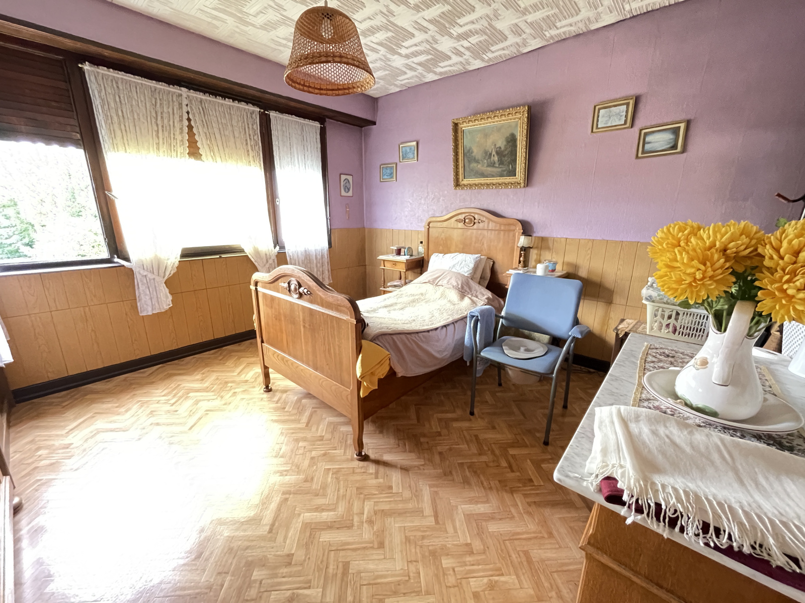 Construction traditionelle de 1963 d'environ 74m2 entièrement à rénover, très beau terrain.