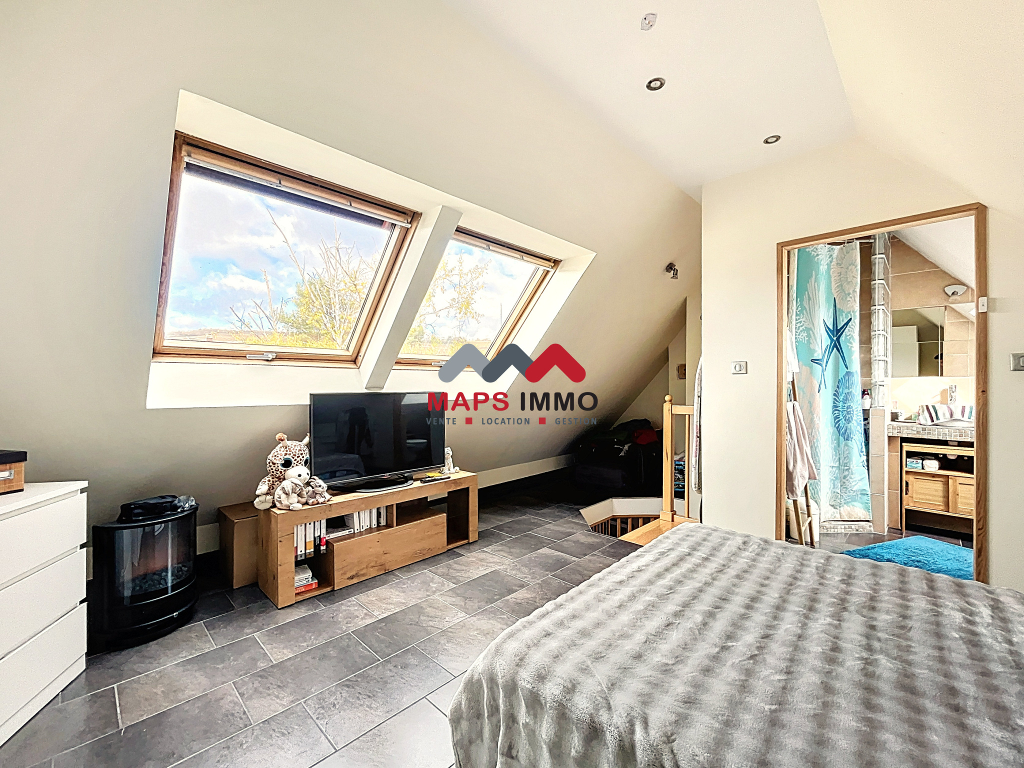 Une superbe suite sous les toits avec salle d’eau privative, offrant un véritable cocon intime et une vue dégagée absolument charmante.