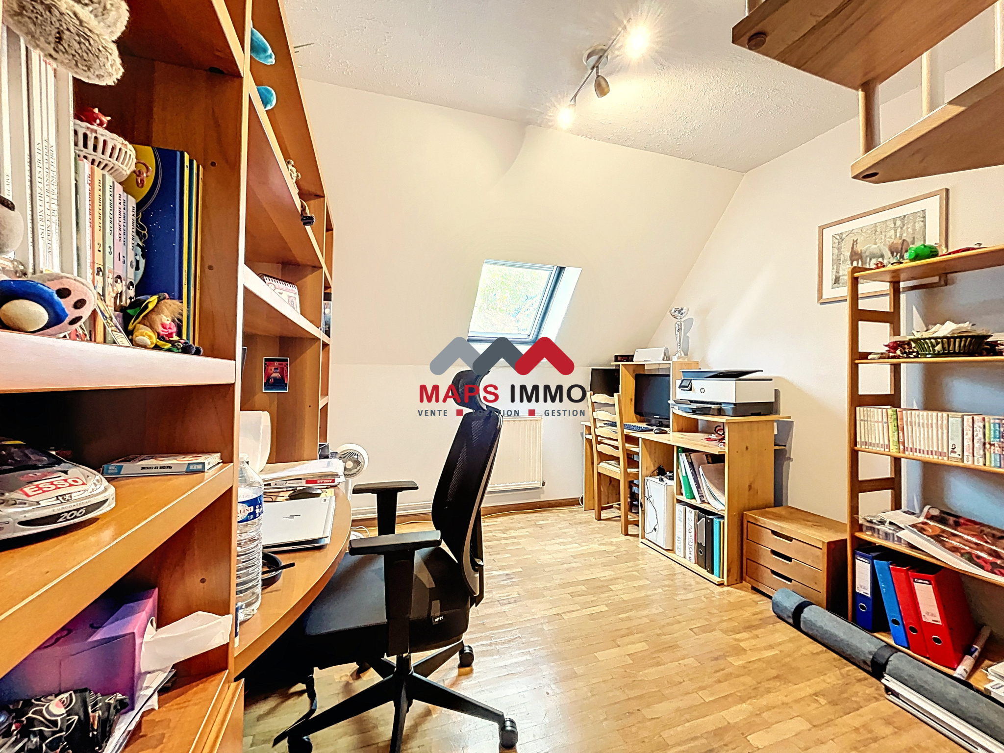 Un dégagement desservant deux chambres, un bureau (ou chambre d’enfant), ainsi qu’une salle d’eau — un espace nuit parfaitement organisé pour toute la famille.