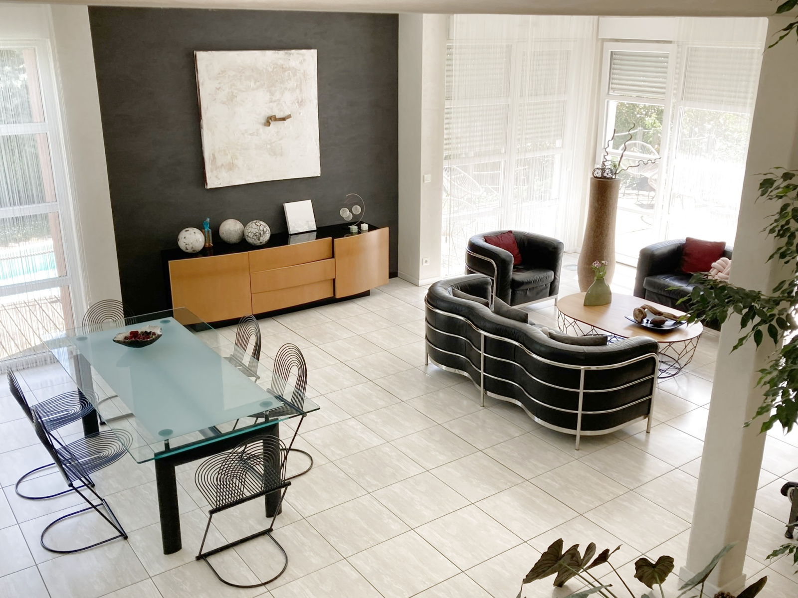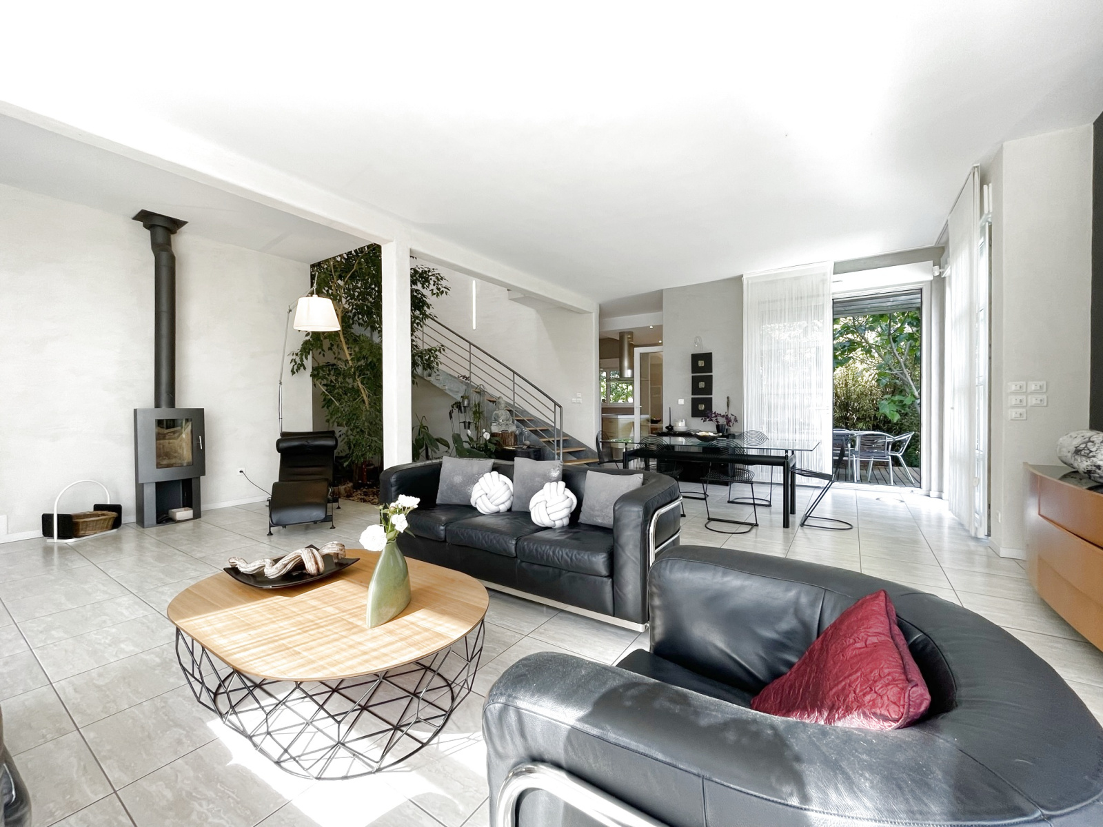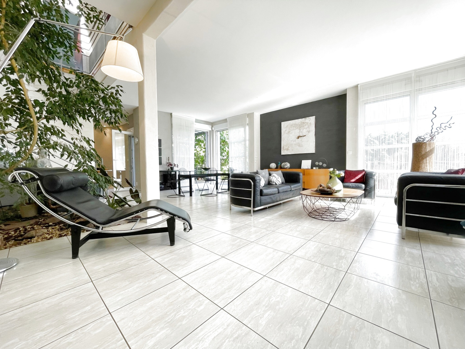 - l’ espace de vie de 55m2, articulé autour d’un jardin d'hiver, donnant sur la cuisine, offre une atmosphère naturelle et très agréable, le tout ouvert sur la terrasse panoramique avec vue sur le jardin et la piscine.
