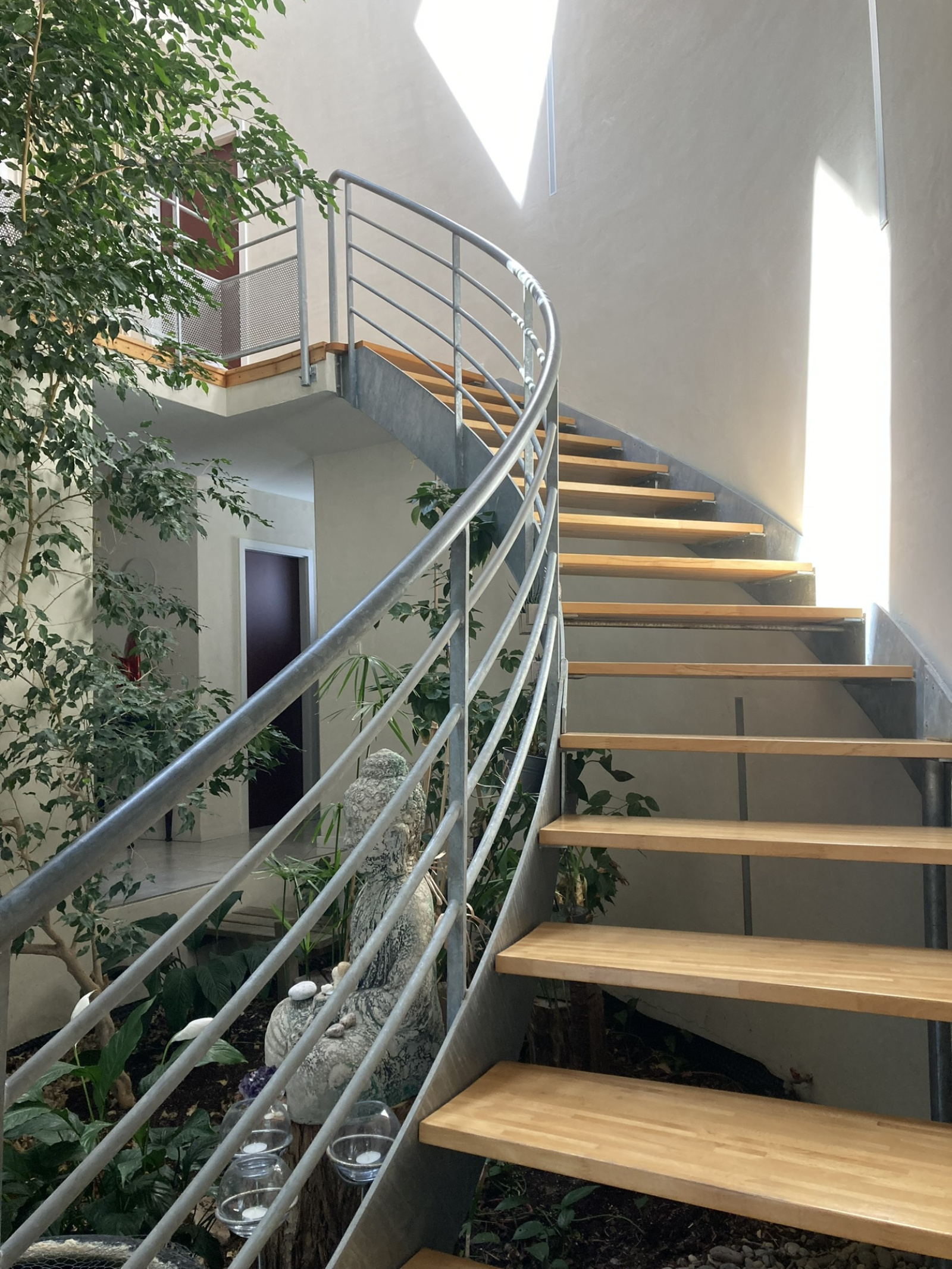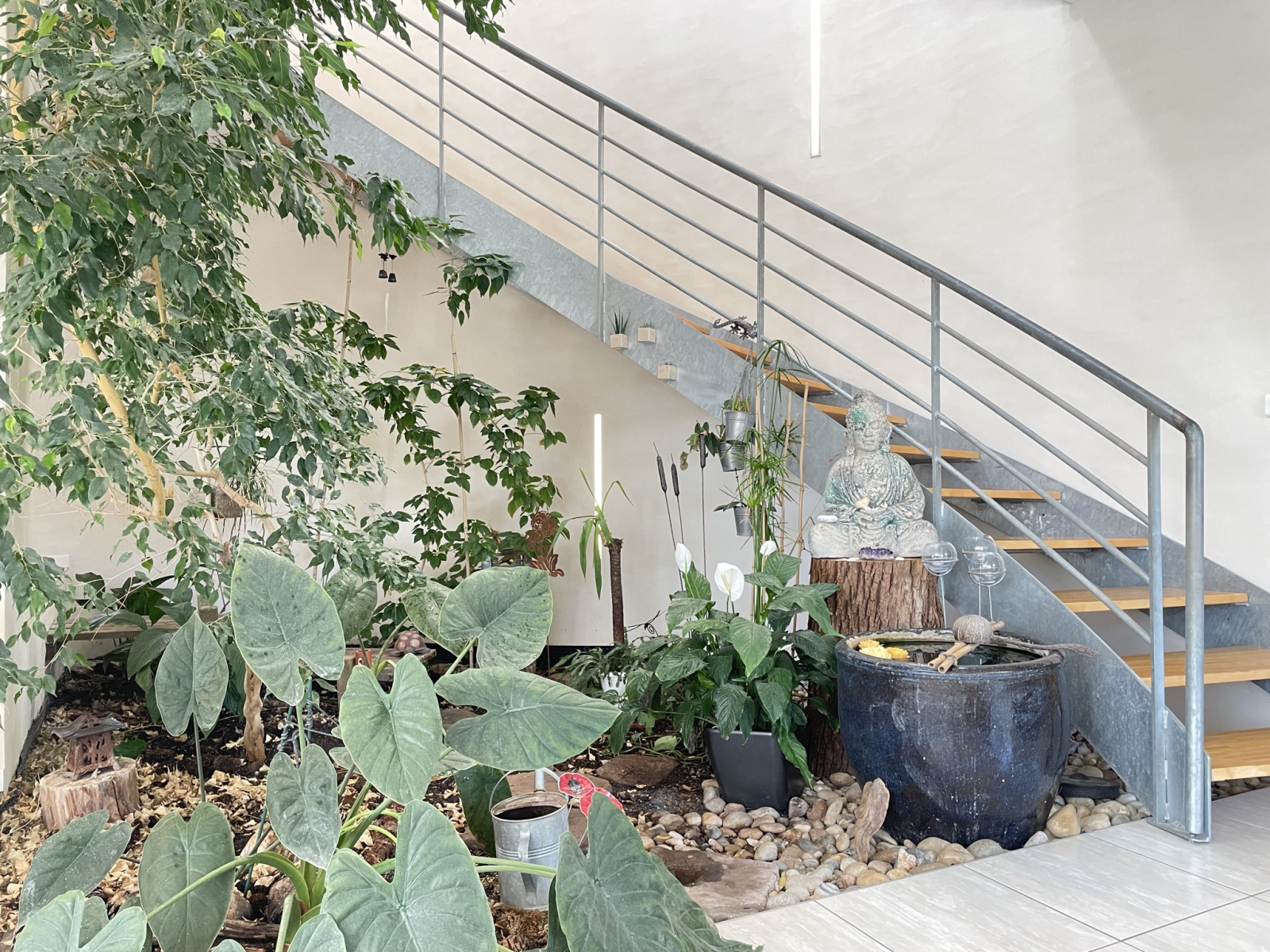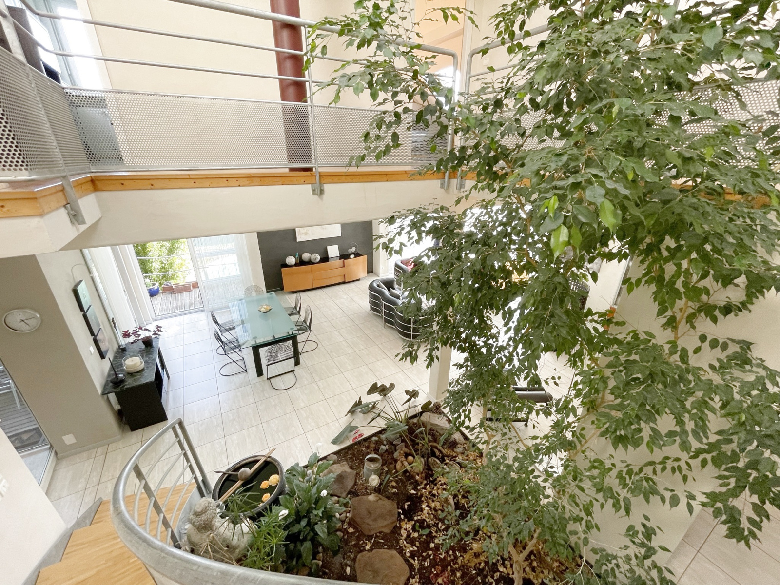 Une coursive ouverte sur le jardin d'hiver avec hauteur cathédrale,