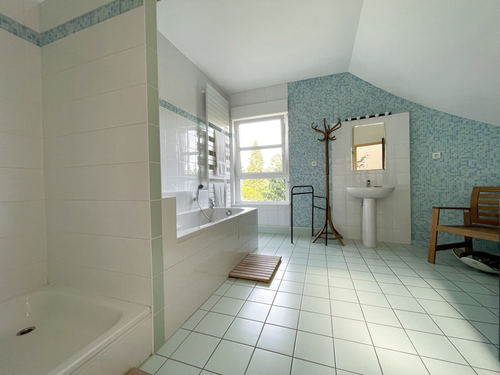 3 chambres et une salle de bain avec baignoire et douche wc