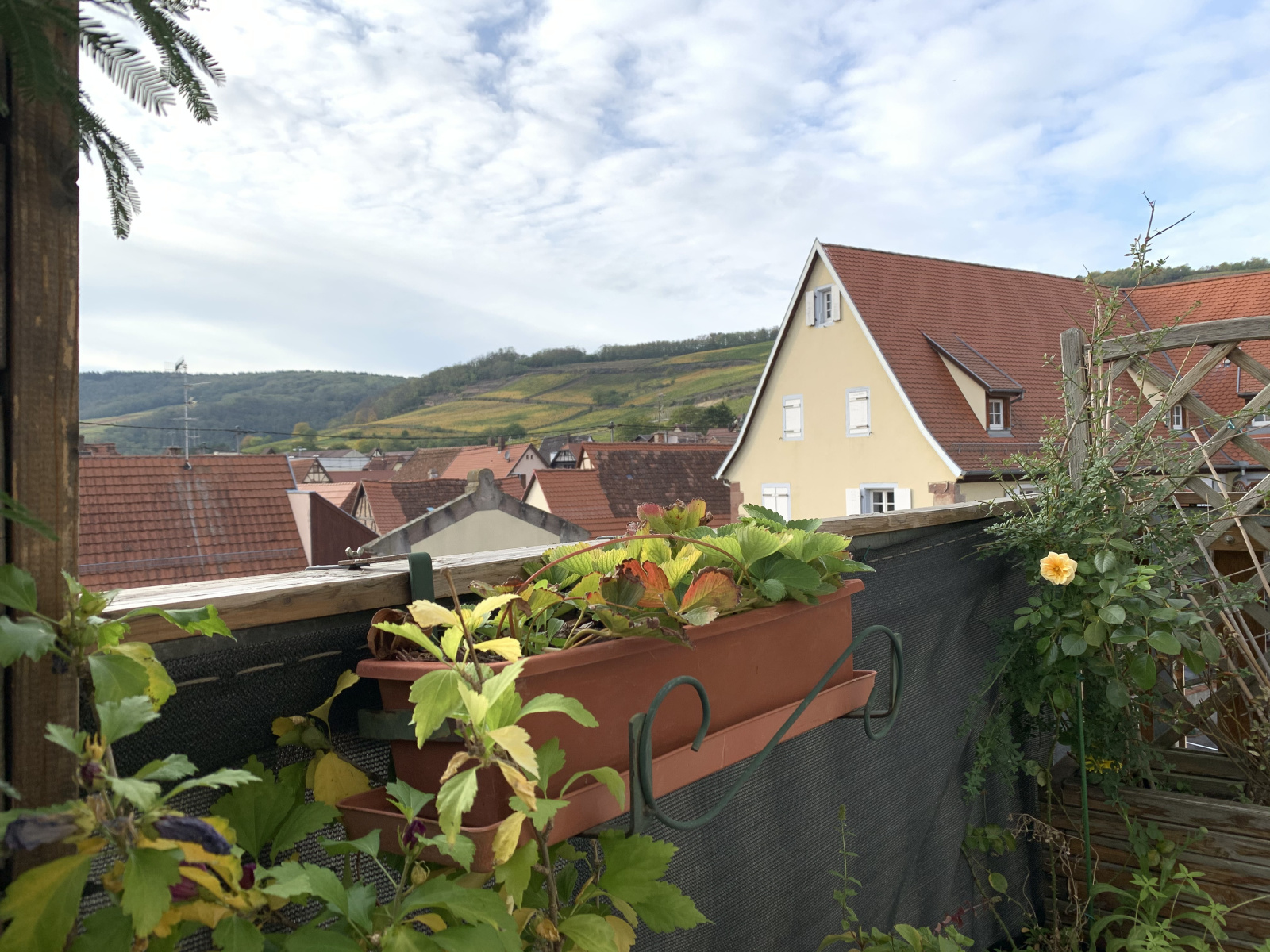 Deux portes-fenêtres mènent à une belle terrasse, équipée d'un store électrique et qui offre une vue imprenable sur le vignoble de la région et saura combler les amoureux de nature.