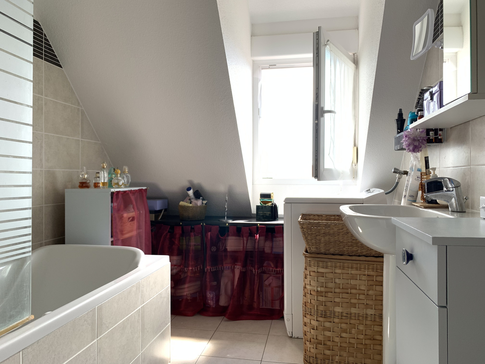 Situé à Marlenheim, à 20 minutes de Strasbourg, 20 minutes de Saverne et 15 minutes de Molsheim, nous vous proposons ce lumineux 3 pièces de 96 m² au sol et 71 m² habitables, au 2ème et dernier étage, sans vis à vis, d'une belle petite copropriété de 2009.
