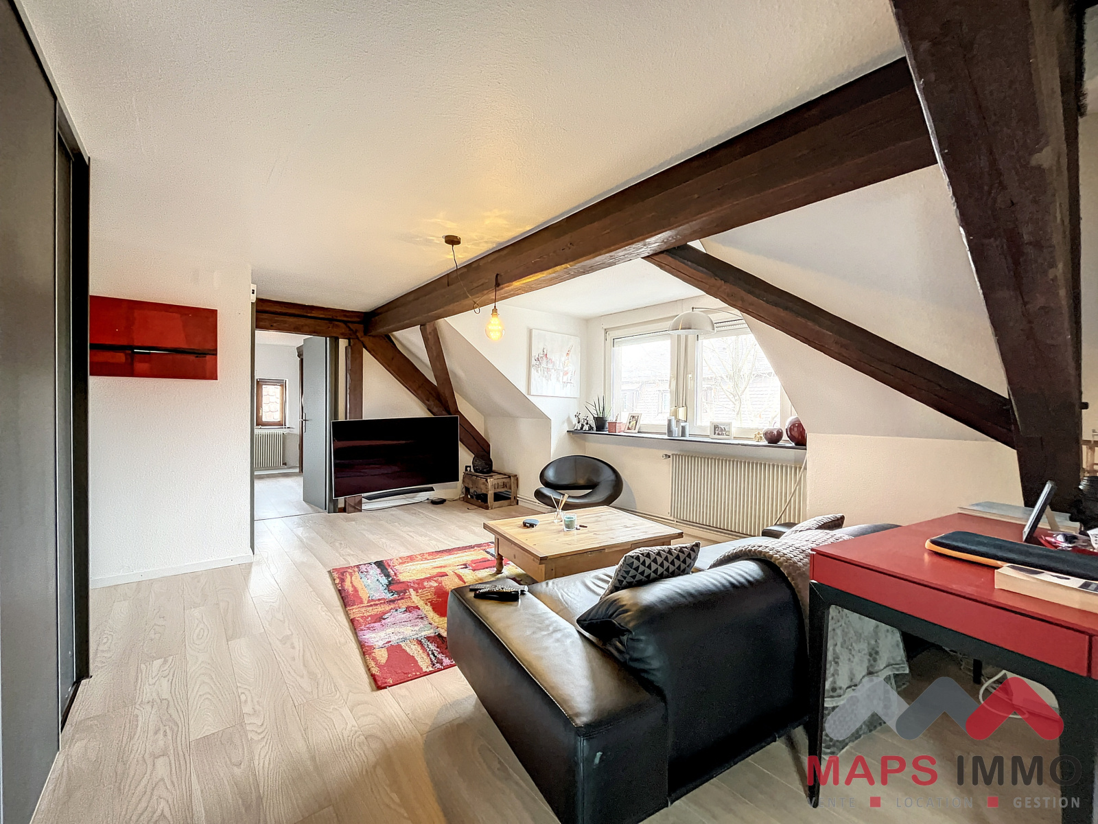 Découvrez dans votre agence Maps Immobilier, ce charmant 3 pièces de 90m2 au sol et de 53 m² habitables. Cet appartement offre de belles prestations avec un large séjour, une cuisine entièrement équipée, deux grandes chambres, un wc séparé, une salle d'eau et un garage. Situé au deuxième et dernier étage d'une petite copropriété de cinq logements, ce bien dispose de charges très faibles et d'un environnement calme à proximité de toutes les commodités du village.Votre contact pour les visites : ZENS Nicolas 06.73.06.40.97