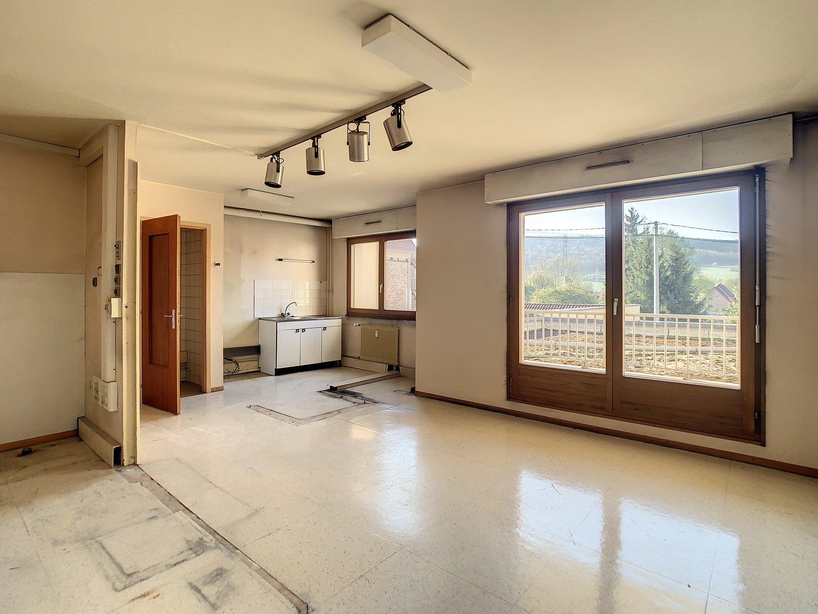 Situé en 1er étage avec ascenseur, plateau de 72 m² habitables, entièrement à rénover.