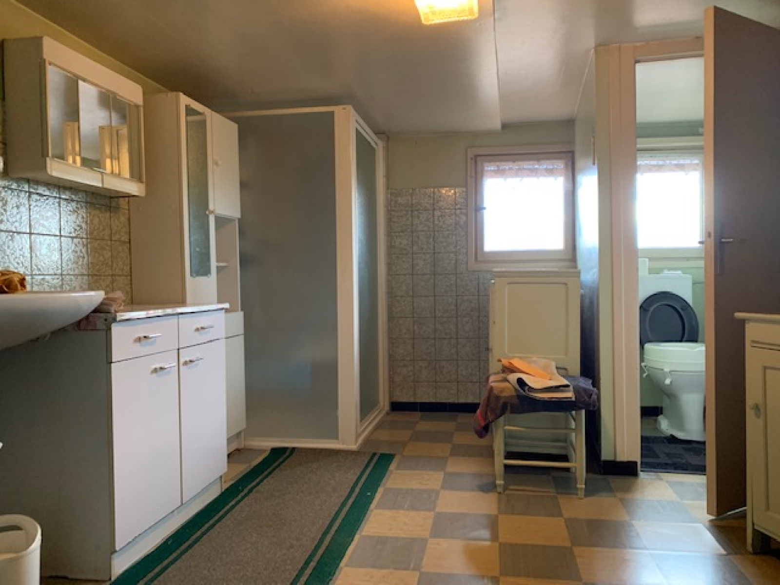 - Au rez de chaussée : une entrée, une cuisine séparée, un salon/séjour et une chambre.