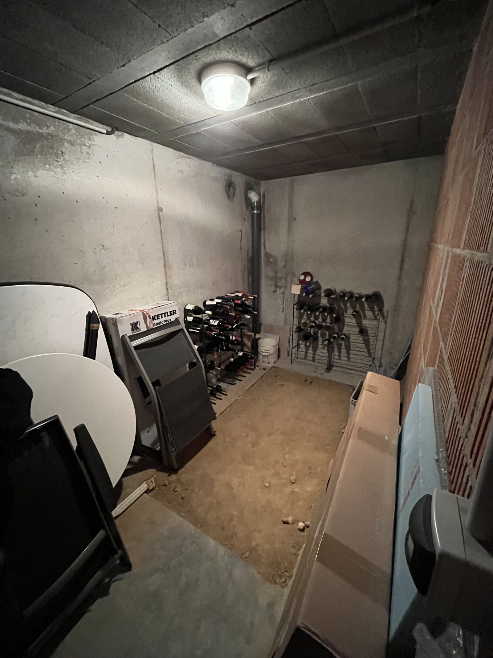 Construction de 1998 sur sous-sol entier, chauffage par PAC air-eau + fioul en revelage + clim reversible, combles isolés planché non aménagés.
