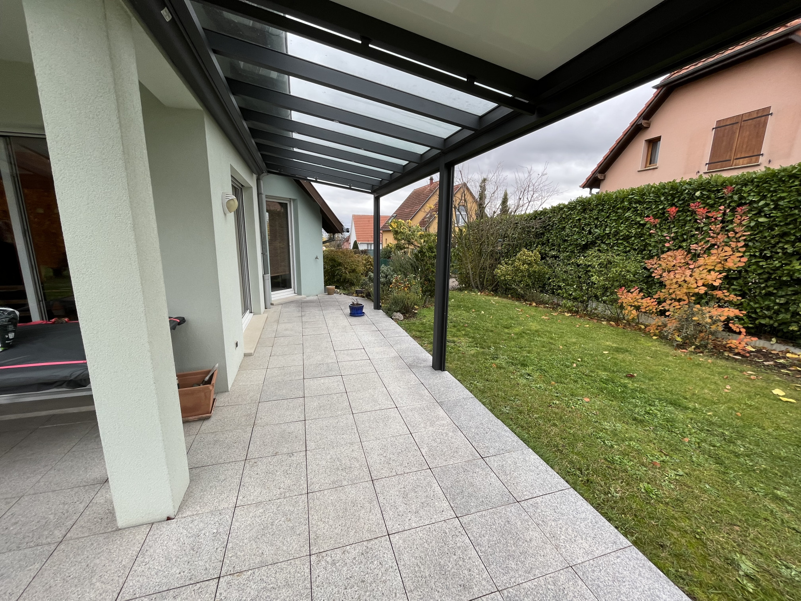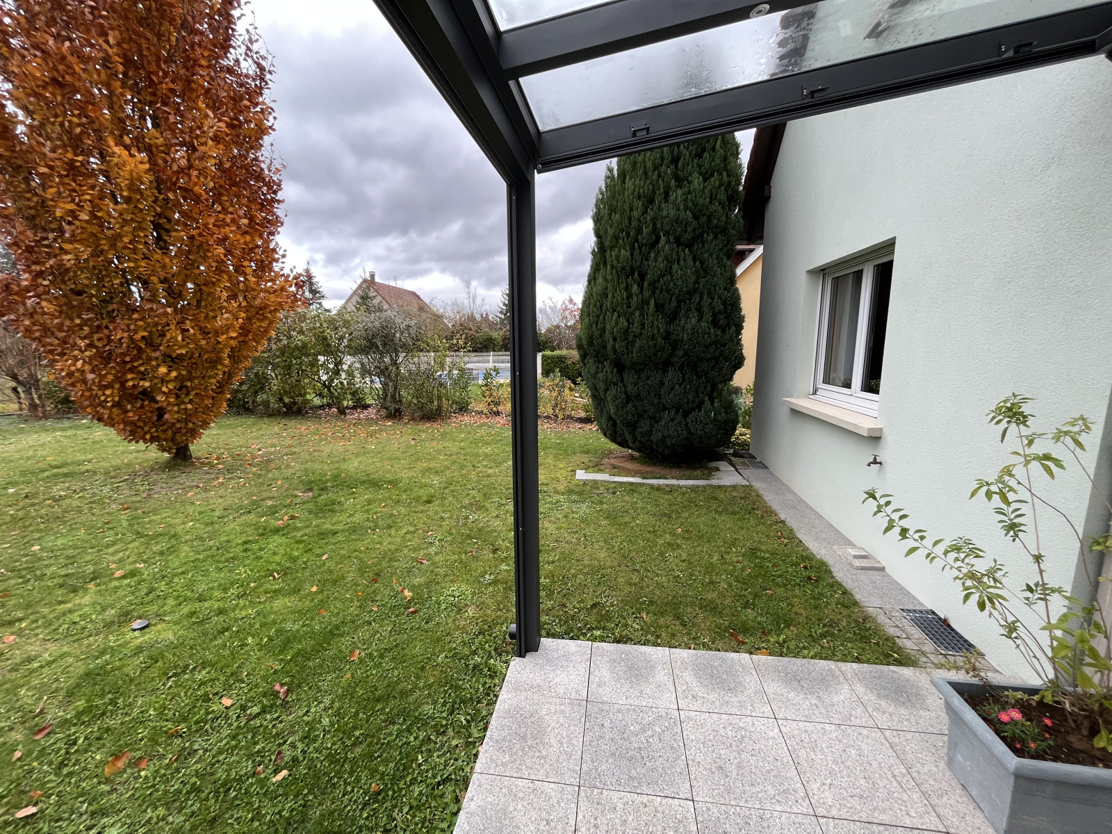 Extérieur : Terrasse avec pergolas (store électrique), jardin.
