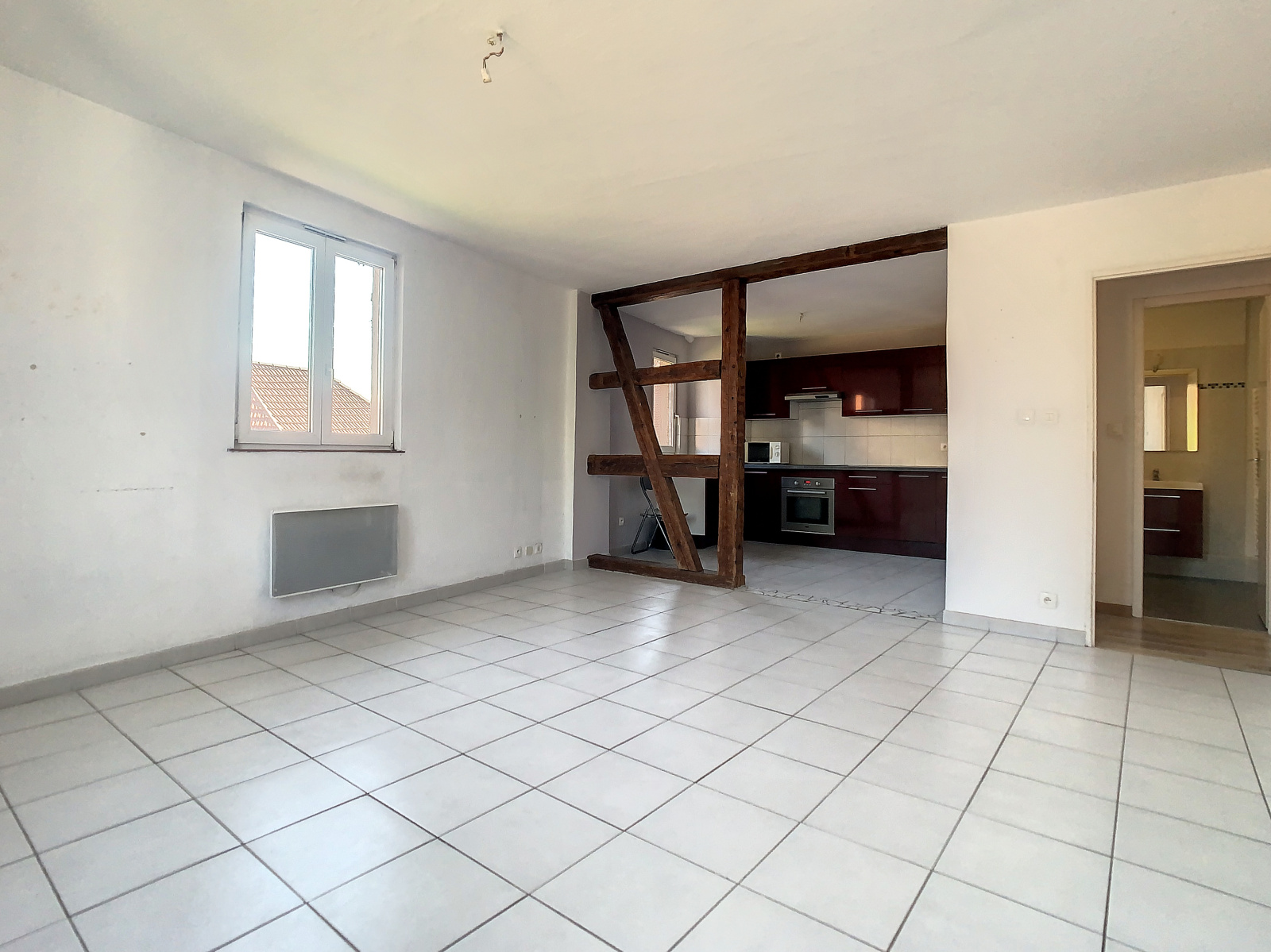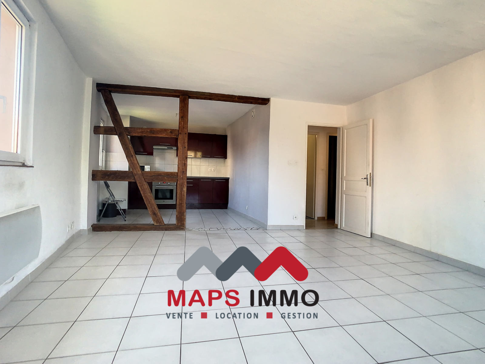 Le bien se compose d'un couloir desservant une chambre, une salle de bain, un wc séparé et un bel espace Salon/Séjour - Cuisine équipée.