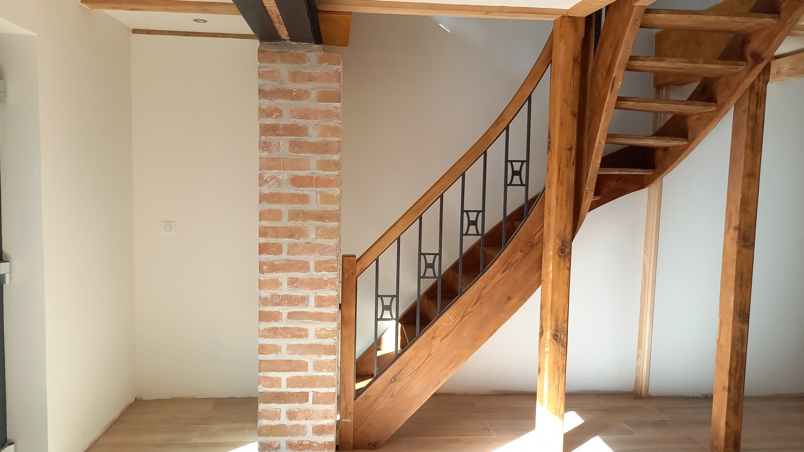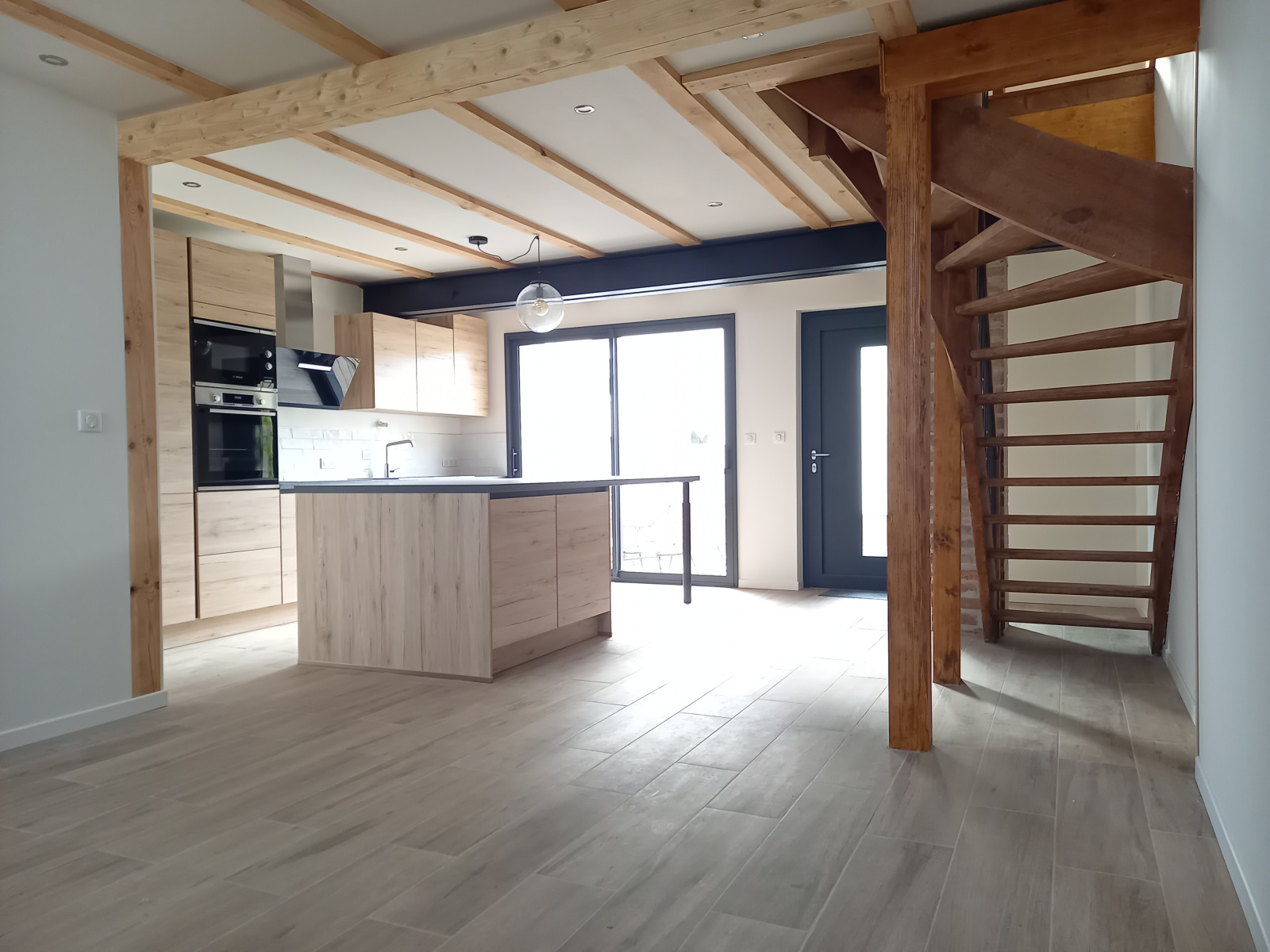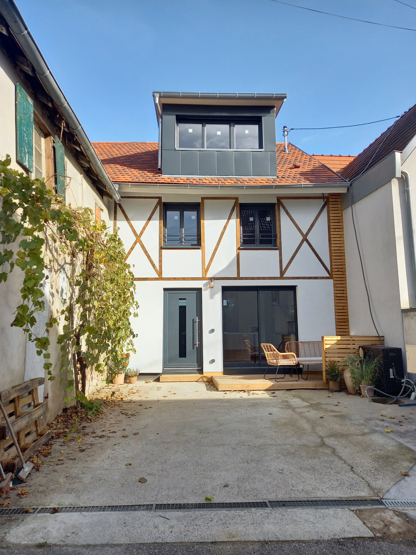Dans une impasse, grange entièrement rénovée en maison neuve d'habitation alliant tradition et modernité de 103.5m² habitables, qui comprend: entrée, séjour avec cuisine équipée de 36m² donnant sur une terrasse, buanderie-local technique avec wc. A l'étage : dégagement, 2 belles chambres, salle d'eau avec wc. Au 2e étage : très grande chambre mansardée. Chauffage par pompe à chaleur air/eau (au sol au rdc et radiateurs à l'étage), isolation complète (sol, murs et toiture) biosourcée. Cour avec stationnement 2 voitures. L'ensemble sur un terrain de 1.02ares. A 20mn de Strasbourg et 15mn de Molsheim, à 7mn de toutes commodités. Arrêt de bus à 2mn à pied, reliant Furdenheim à Strasbourg. Pour les visites: Laurent MATHIA 06.63.95.09.98