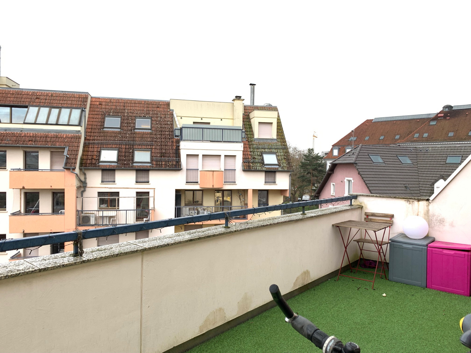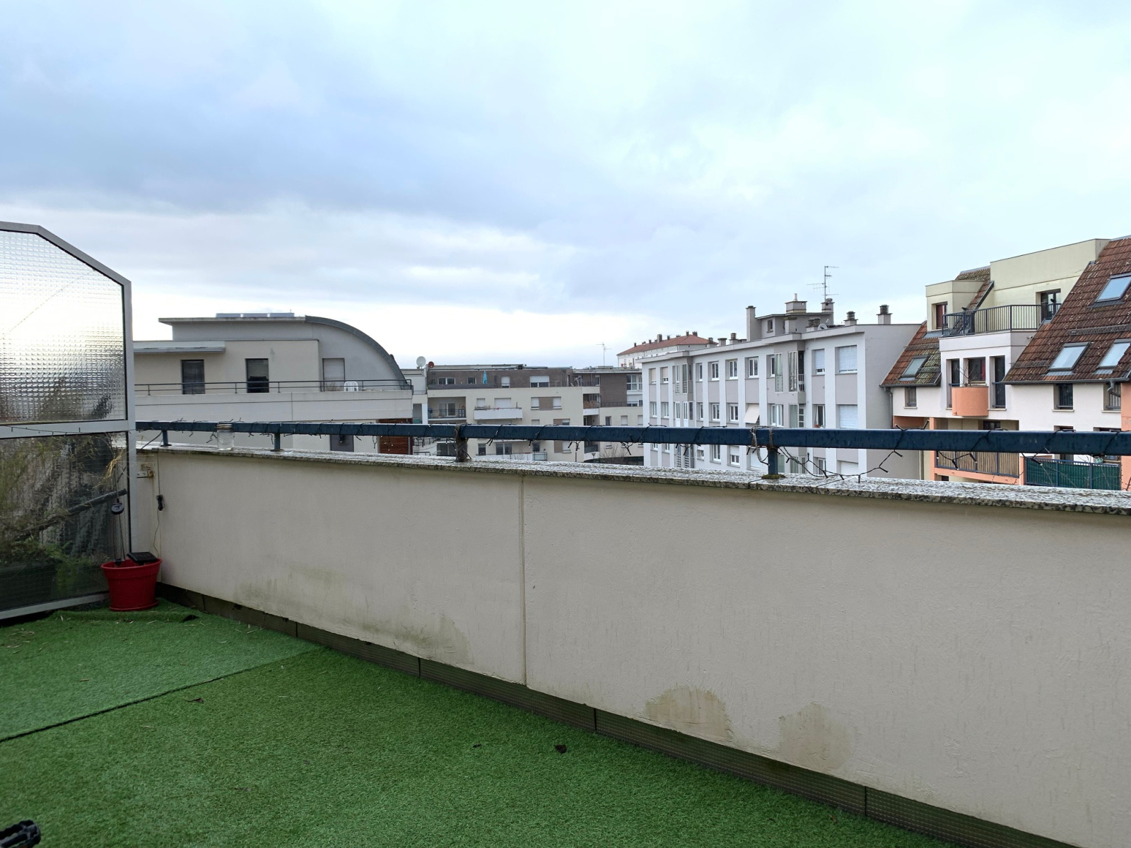 - d'une entrée avec placards, d'une chambre et d'un spacieux salon/séjour permettant d'accéder à une belle terrasse de 14 m², d'une cuisine séparée équipée et d'une salle de bain avec wc.