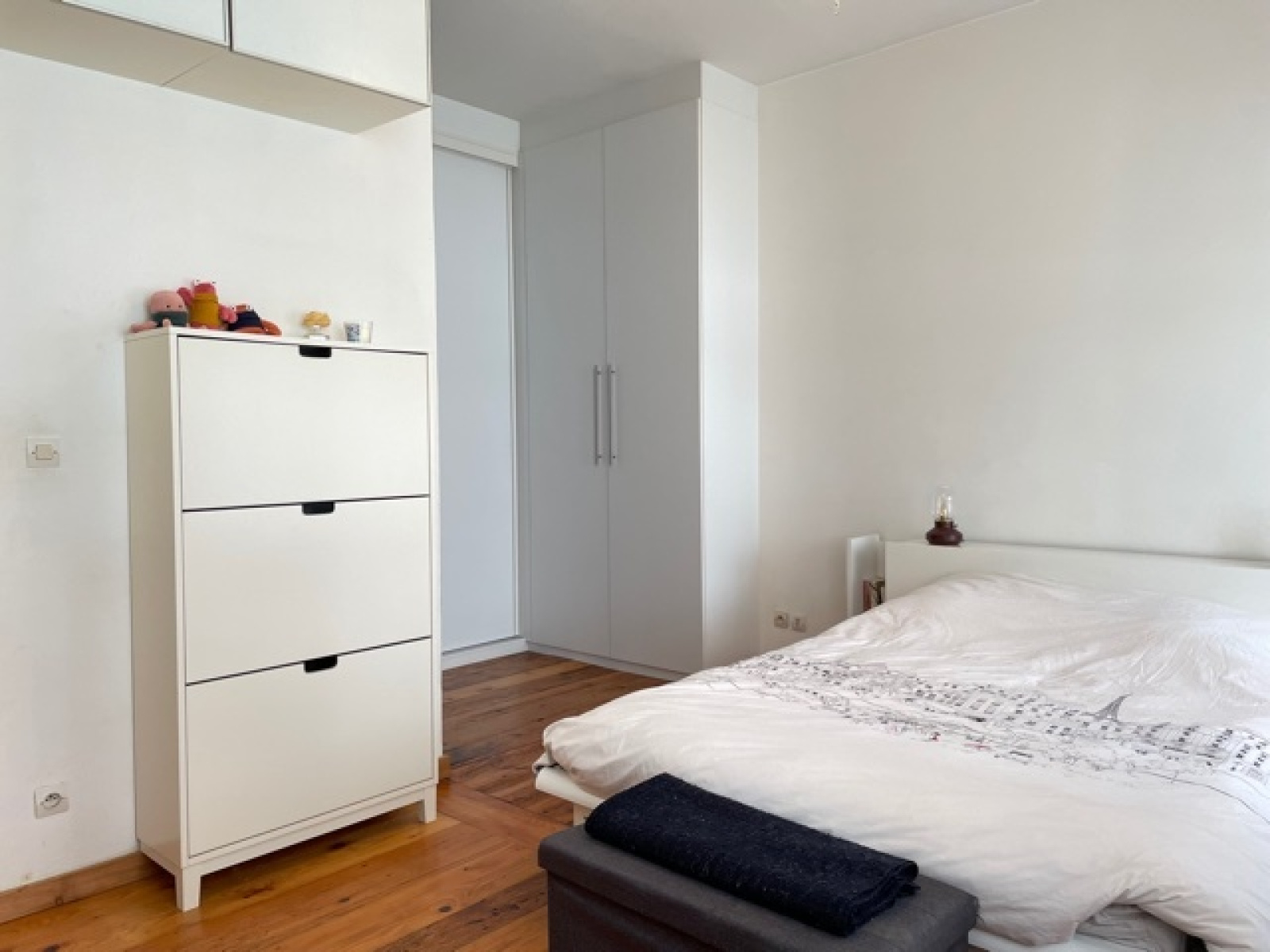 Vous accéderez au logement par un petit dégagement donnant sur un spacieux et lumineux espace de vie de 32 m², composé d'un magnifique salon-séjour avec une belle armoire murale et de larges ouvertures vitrées ainsi que d'une cuisine américaine tout équipée, + wc séparés.