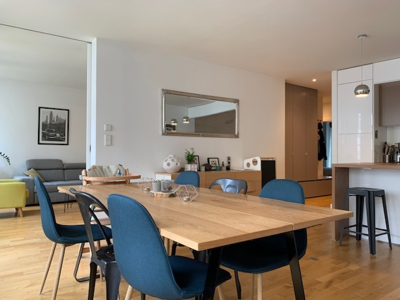 - d'une entrée avec de nombreux rangements, desservant un grand espace salle à manger et cuisine tout équipée doté de grandes fenêtres, un salon/séjour, un wc séparée, 2 chambres et une salle de bain.