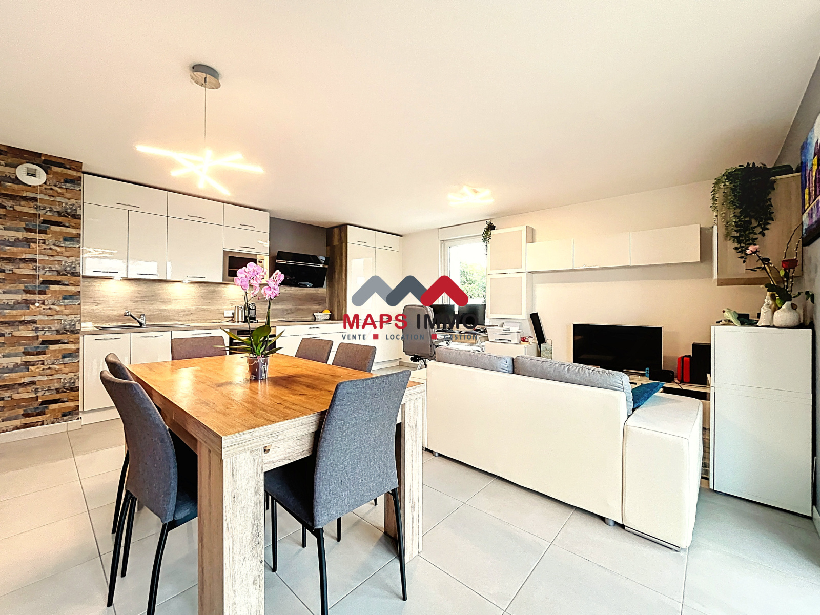 - Une cuisine ouverte, entièrement équipée
