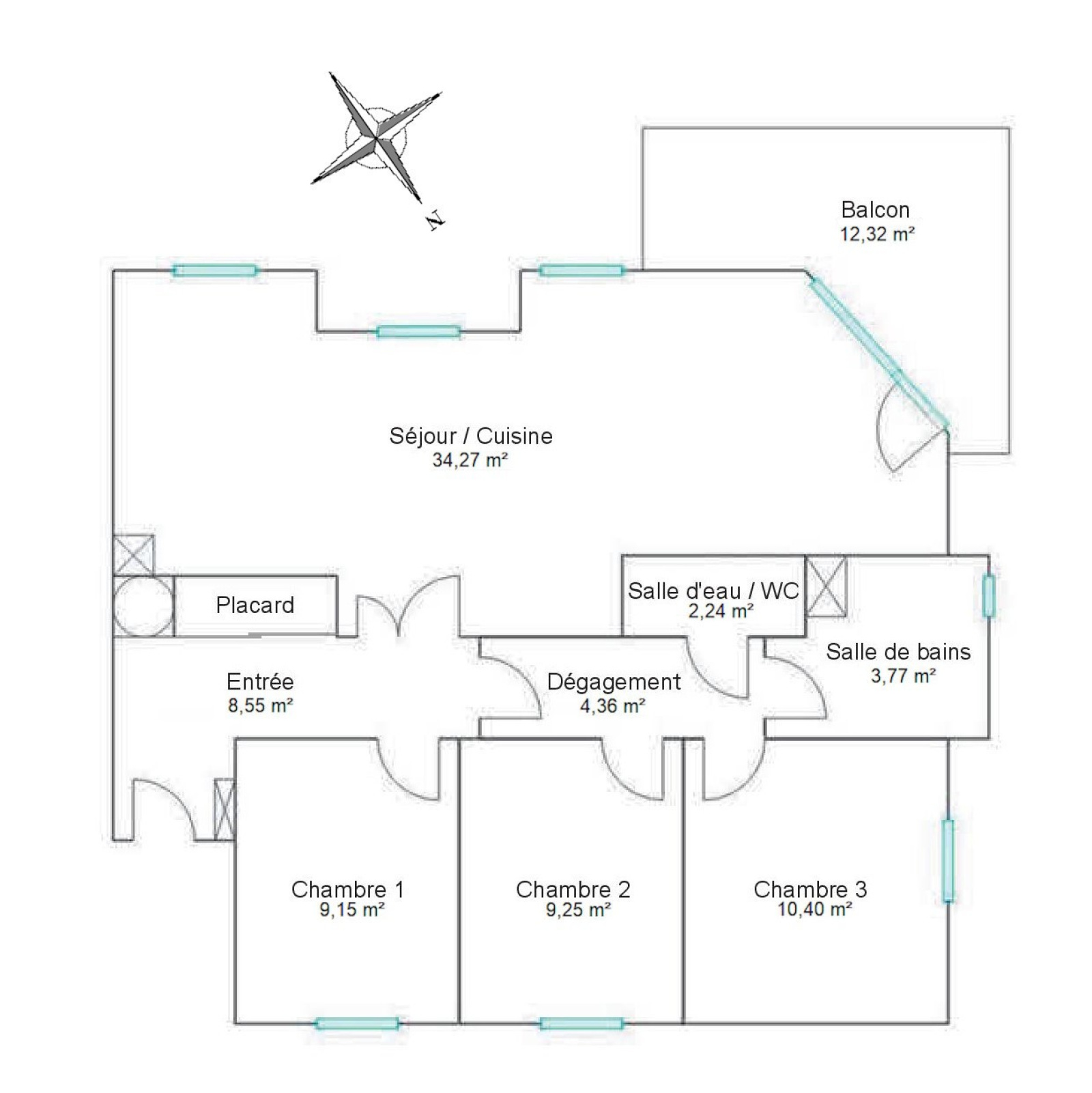 Il se compose d’un grand séjour de 34 m2, lumineux, exposé sud-ouest donnant accès à un balcon semi-couvert de plus de 12 m2 sans vis-à-vis direct.