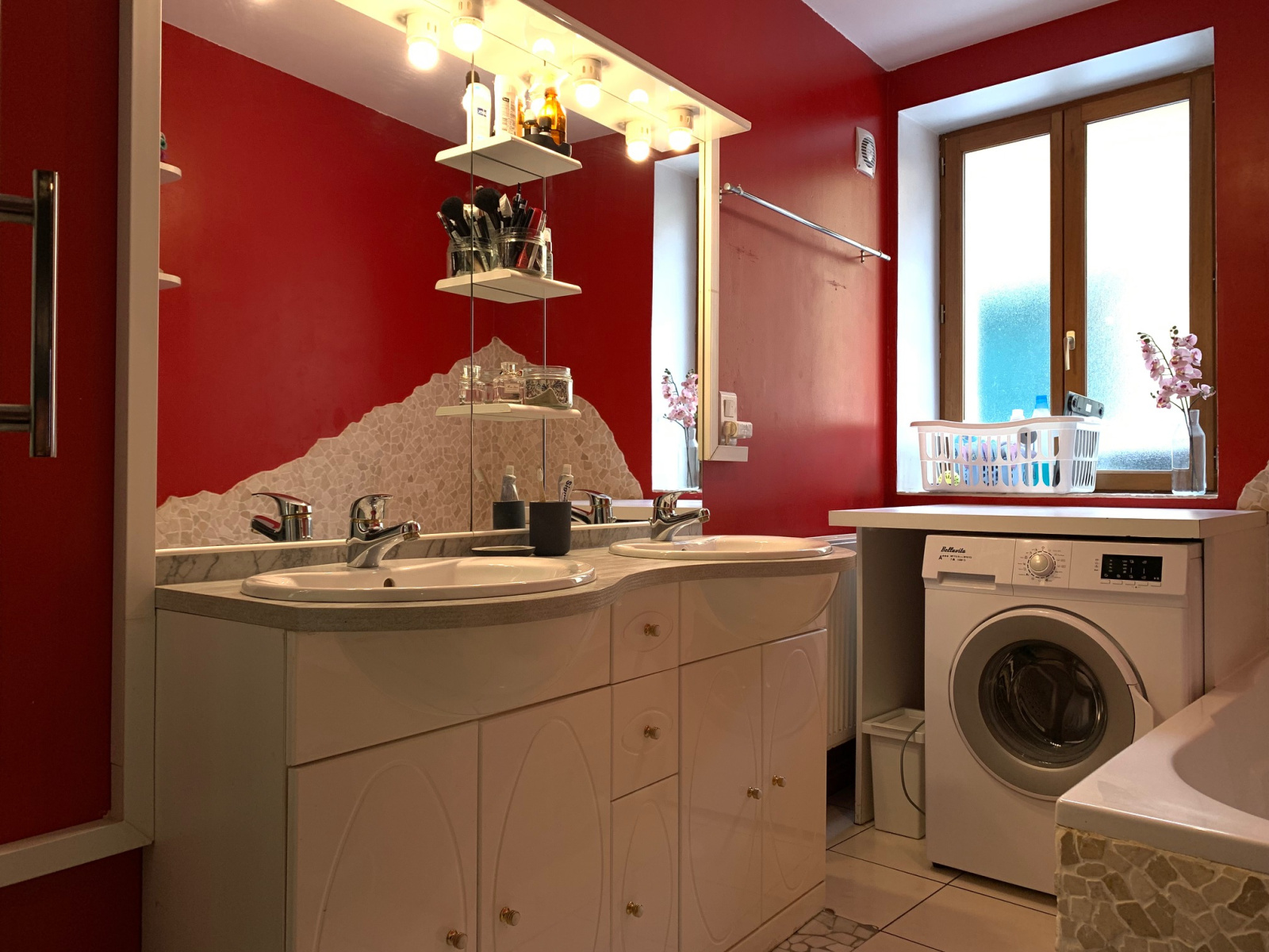 Le bien est composé d'un salon/séjour ouvert sur la cuisine tout équipée (rangements, four, plaque de cuisson), une chambre, une salle de bains (douche, baignoire, double vasque), wc séparé.