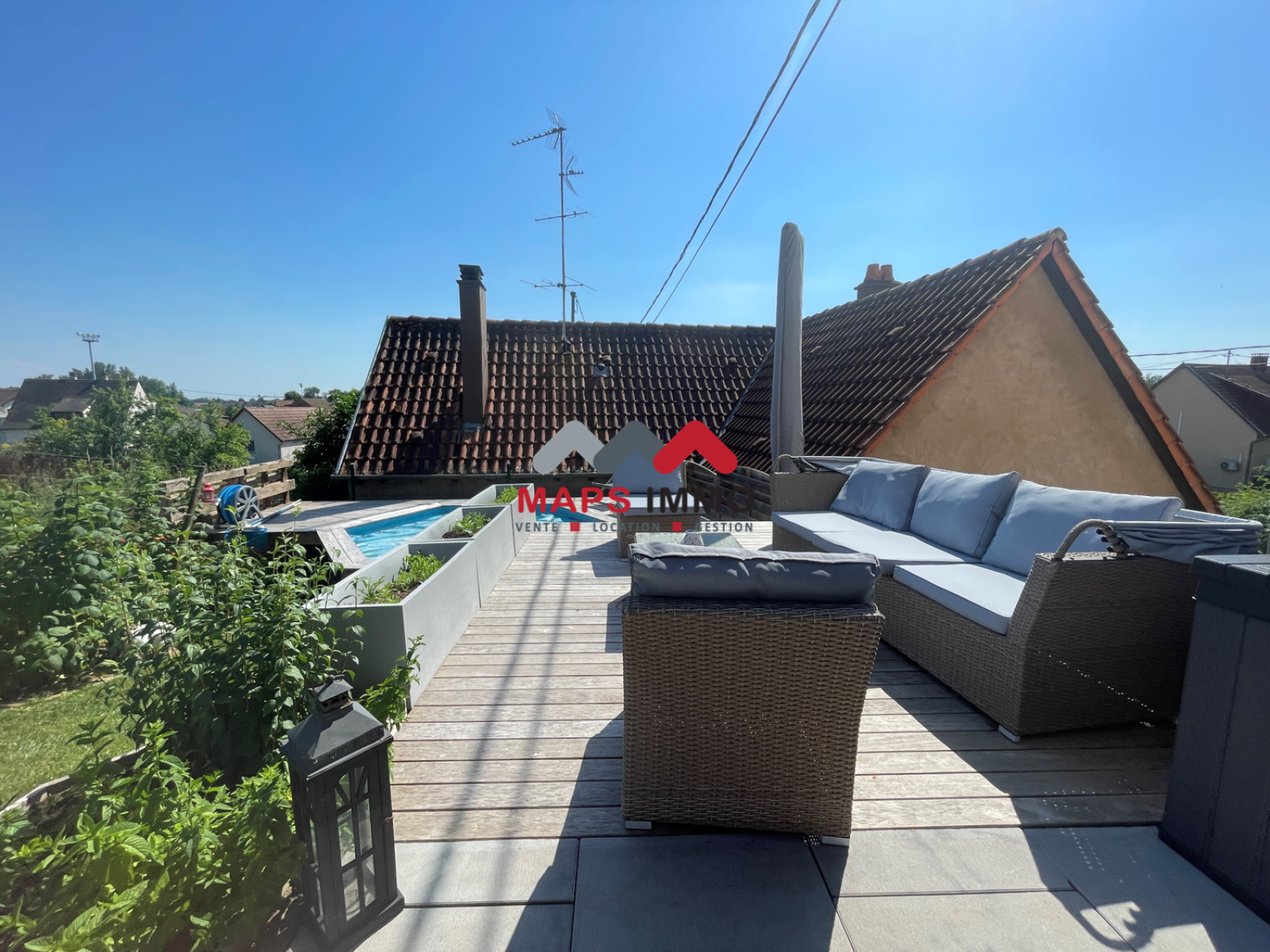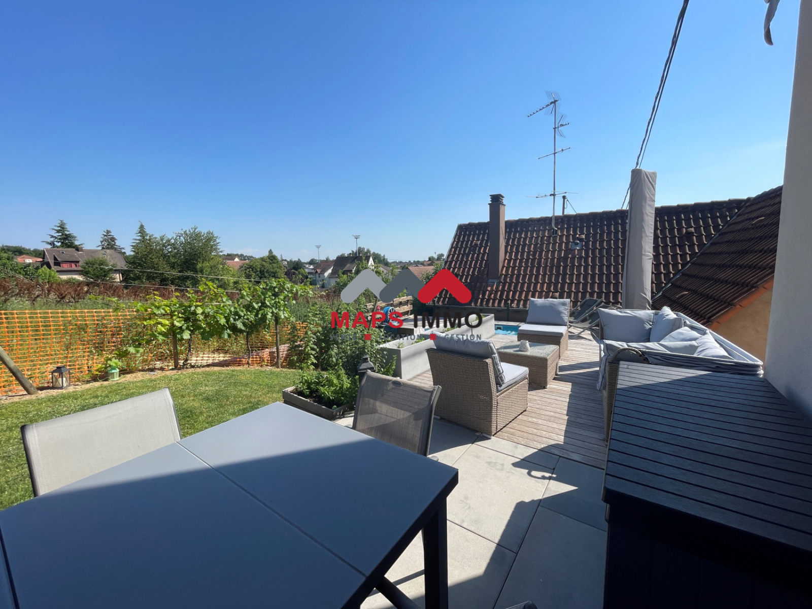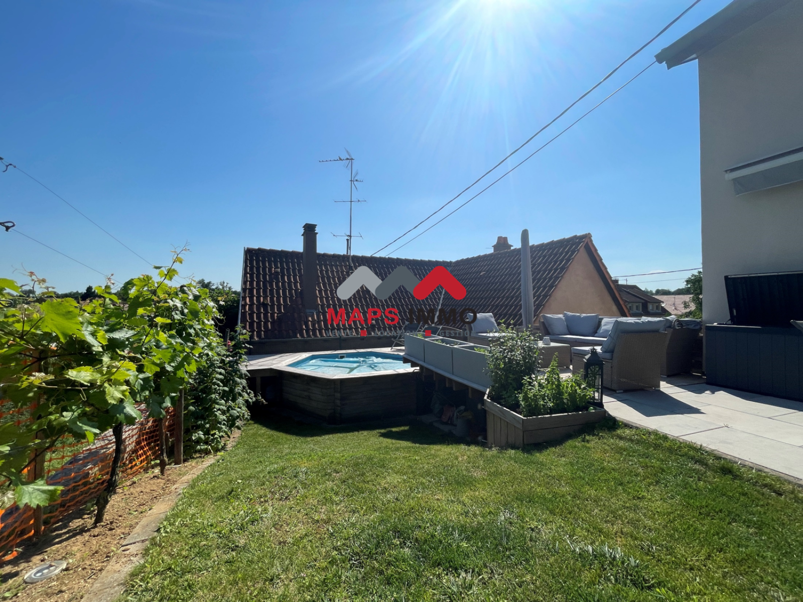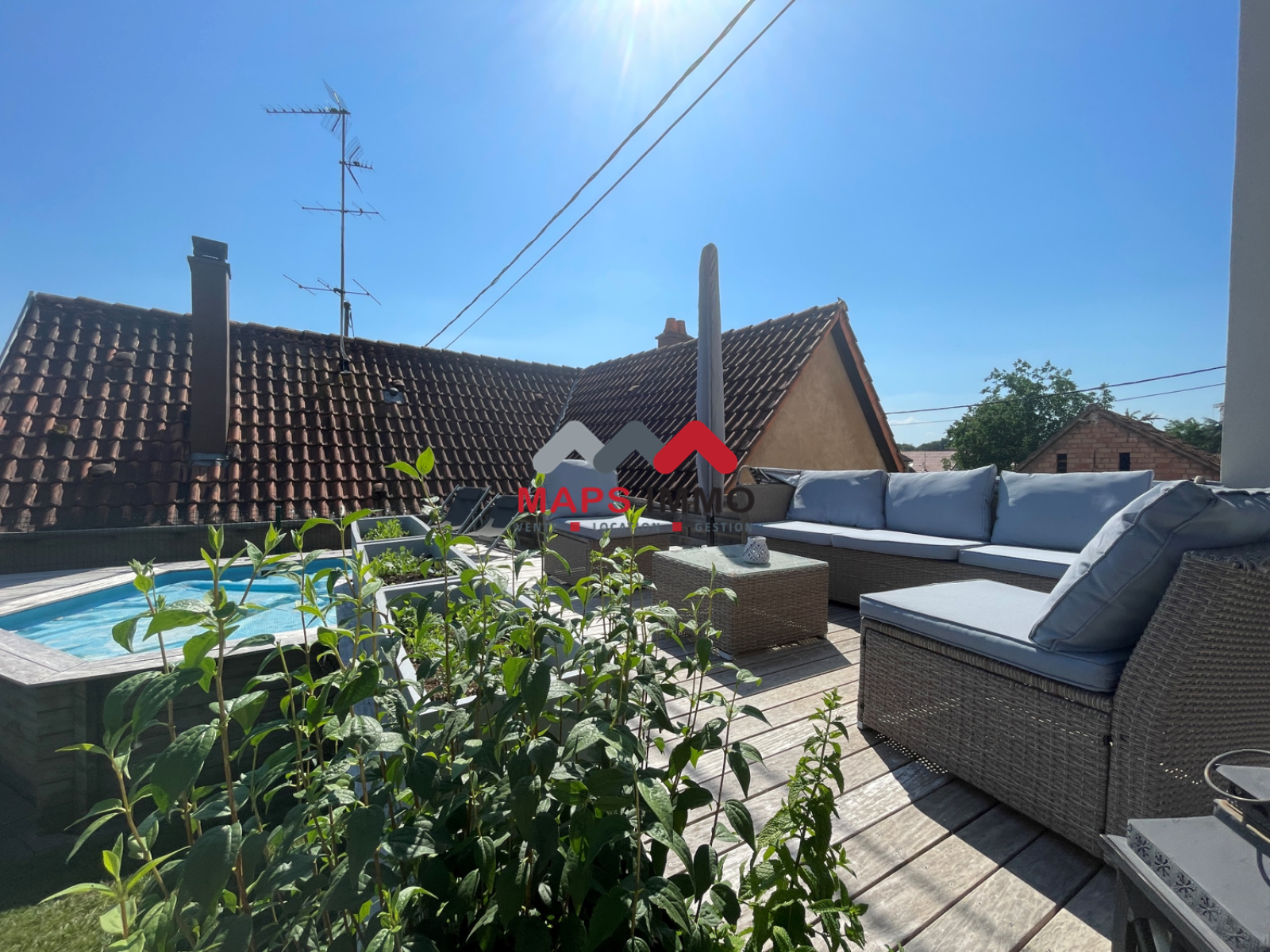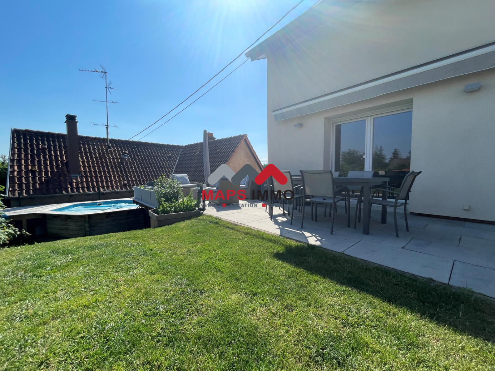 Exceptionnelle maison accolée rénovée en 2020, finitions de qualités, deux terrasses, un jardin, une piscine hors sol, un garage avec espace buanderie.