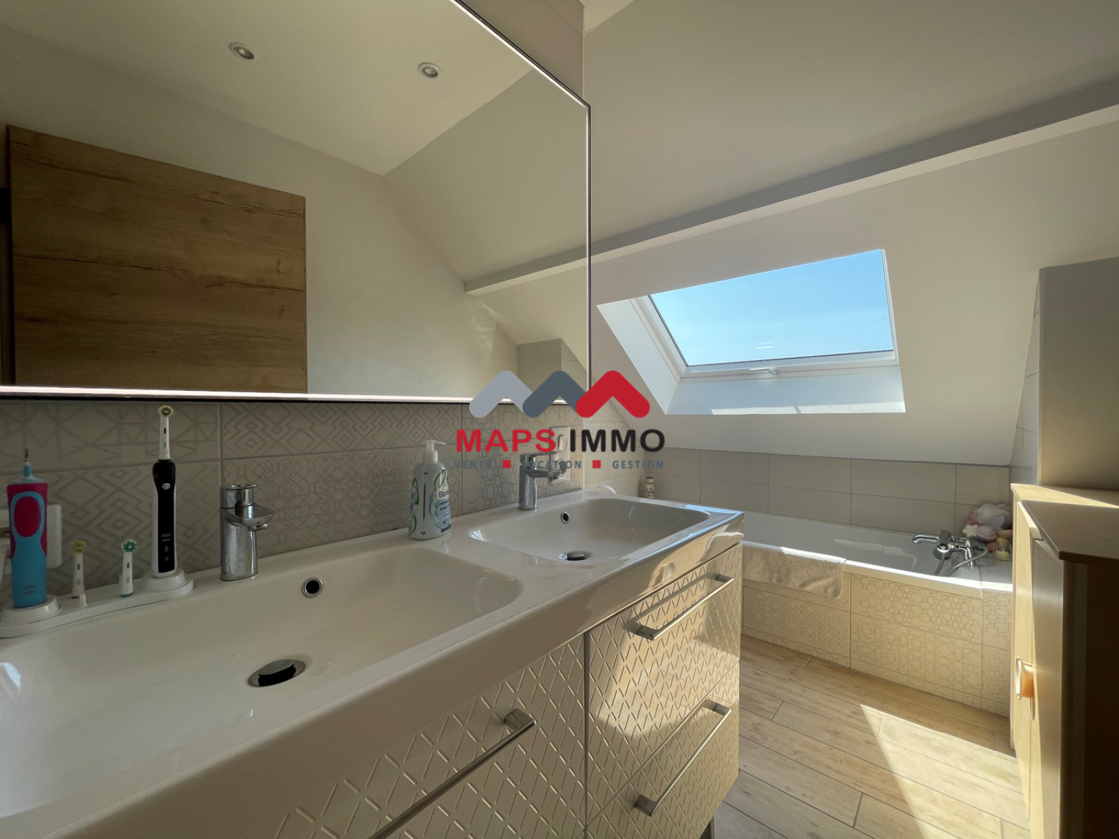 Bâtie en triplex, ce bien vous offre 112m2 au sol, 94m2 habitable, l'agencement donne une vraie impression d'espace, les chambres sont très grandes, une avec dressing compris et un deuxième dressing indépendant pour les enfants.