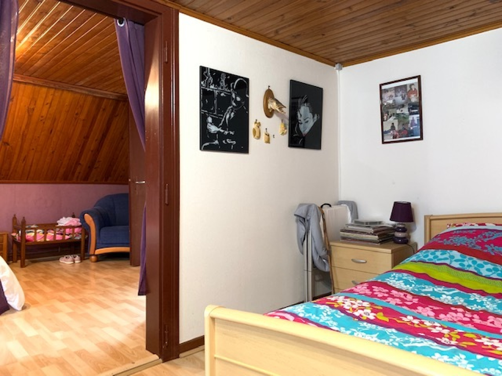 A l'étage, vous trouverez un dégagement, un espace bureau, une chambre, un wc et deux chambres en enfilade.