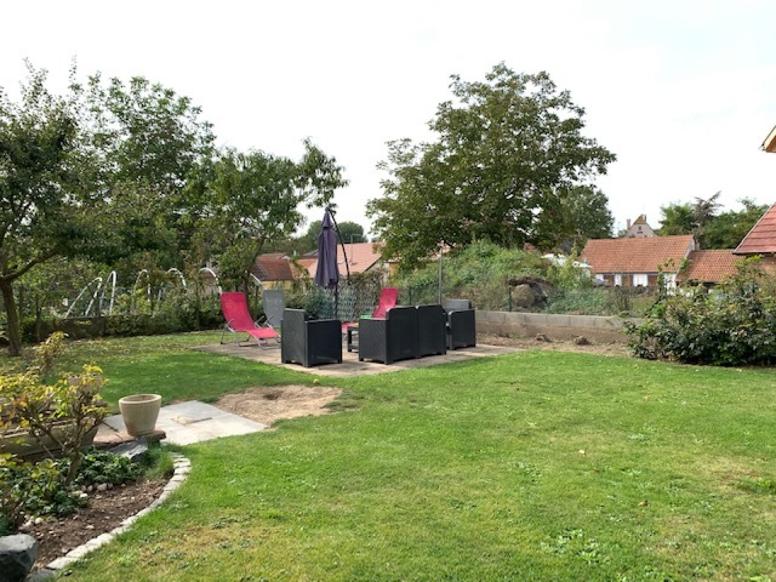 Le rez-de-chaussée se compose d'un hall d'entrée, d'une cuisine équipée, d'une salle de bain, d'une salle à manger, d'un salon avec accès au jardin et d'une chambre.