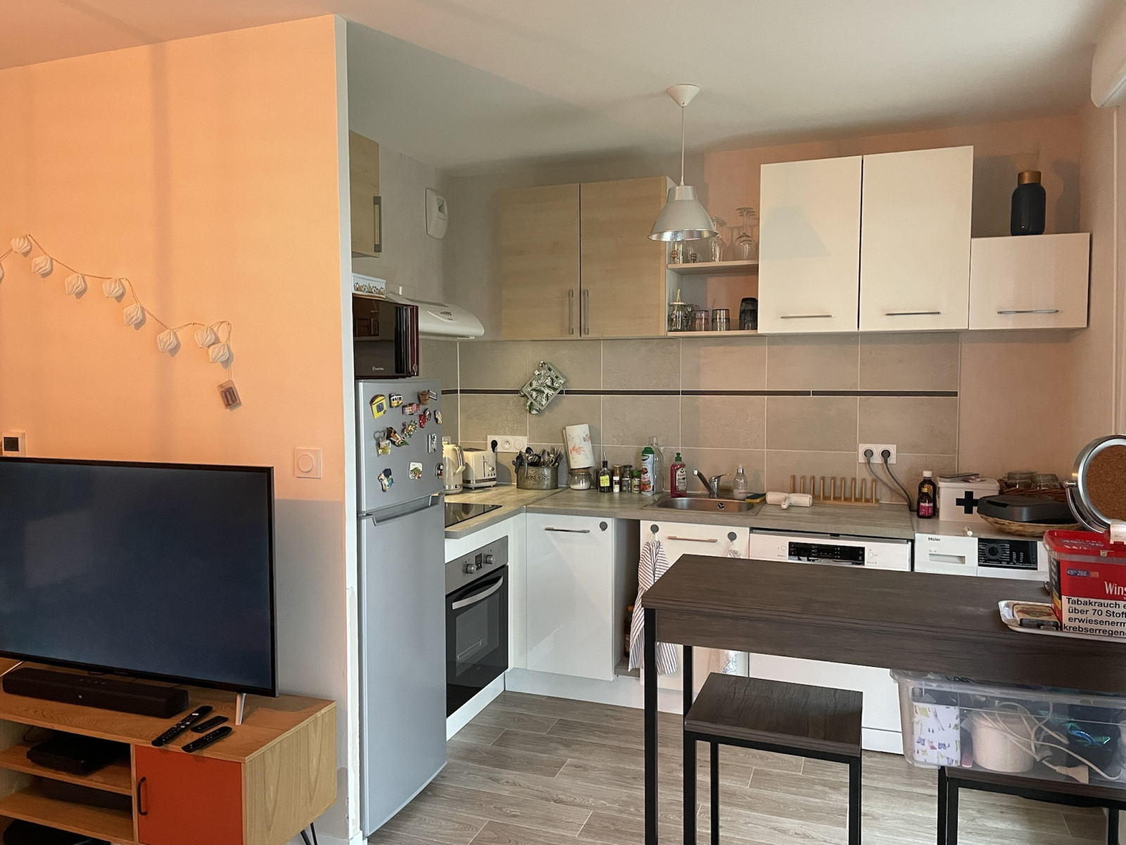 - Un salon/séjour ouvert sur une cuisine équipée d'une surface totale de 23m², avec accès a un balcon de 9m².