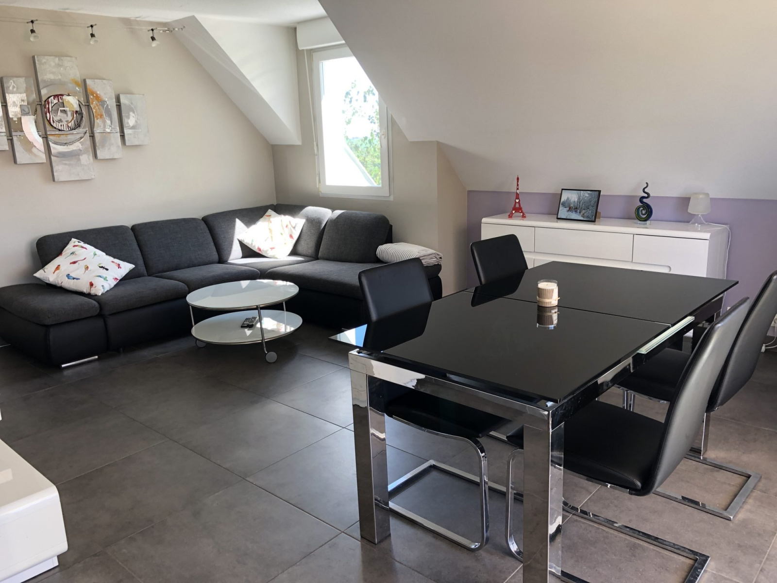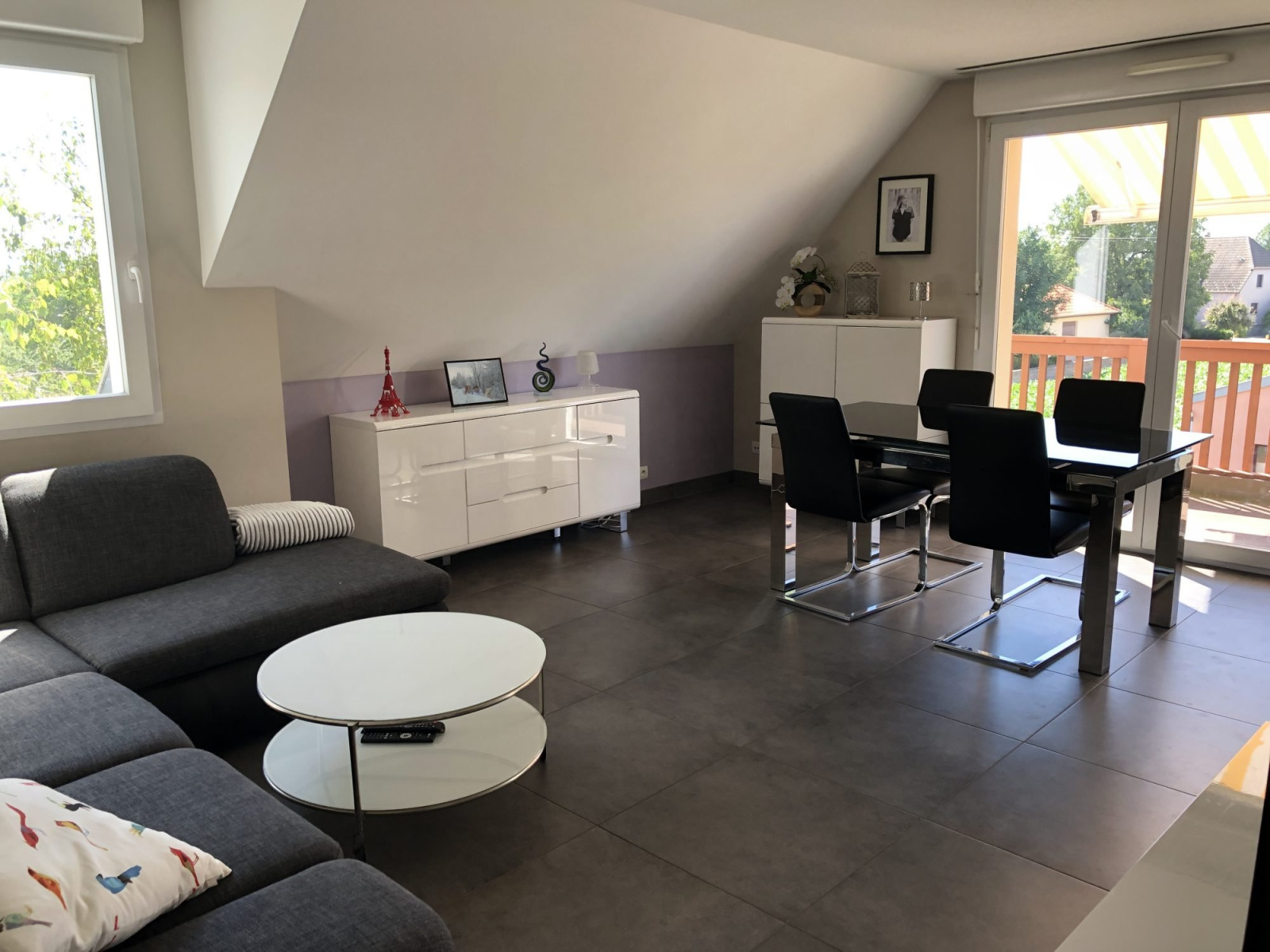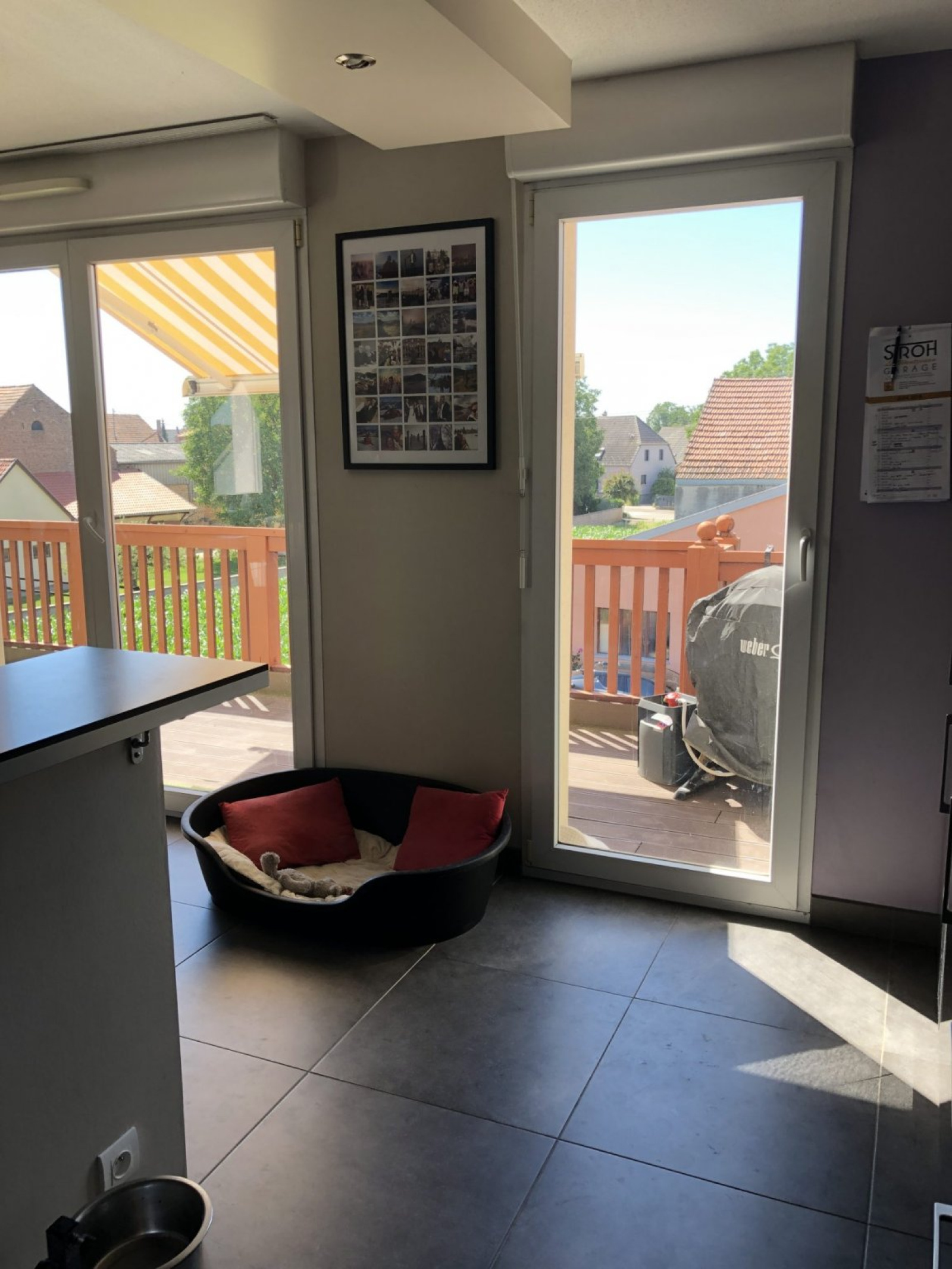 Exclusivité MAPS IMMOBILIER.Proche Strasbourg, sur la commune d'Hurtigheim, au calme, au sein d'une charmante résidence récente, un appartement 3 pièces de 54.57m²soit 61m² au sol.Il se situe au 2° étage, dispose d'une belle pièce de vie avec sa cuisine équipée donnant sur une grande terrasse, 2 chambres, une salle de d'eau avec douche à l'italienne, un wc.Un parking et un garage complète ce bien.Véritable coup de c?ur pour cet ensemble; une opportunité à saisir.
