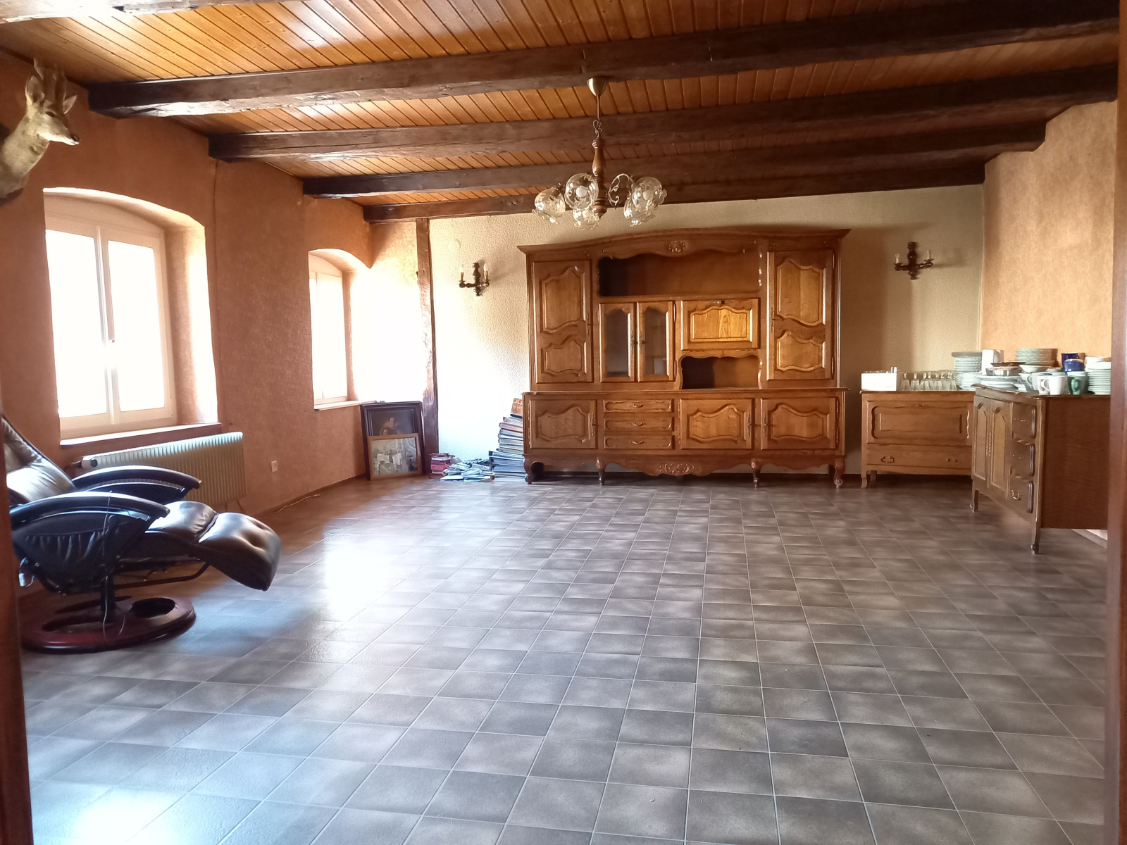 Au centre du village, grande maison de famille avec de nombreuses possibilités. 170m². Au rdc: entrée, couloir, 2 pièces de 41m², cuisine sur l'arrière de 16m², salle d'eau, wc, cave et chaufferie. Garage attenant. A l'étage, 2 accès possibles: dégagement, 2 chambres, bureau, séjour 30m², cuisine 20m² avec extension donnant sur l'arrière. Grenier de plus de 100m². Cour avec terrasse et appentis. Terrain en pente. Le tout sur 16.34 ares. Idéal grande famille ou pour créer 2 voir 3 logements. Logement à consommation énergétique excessive: classe F. Travaux à prévoir. A découvrir lors d'une visite. Contact: Laurent MATHIA 06.63.95.09.98