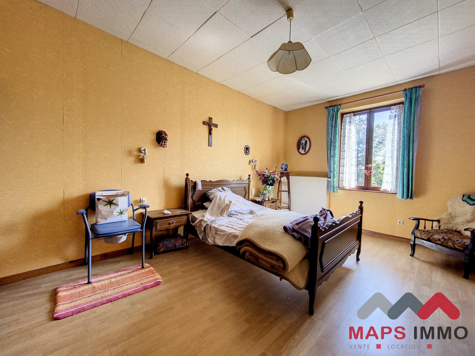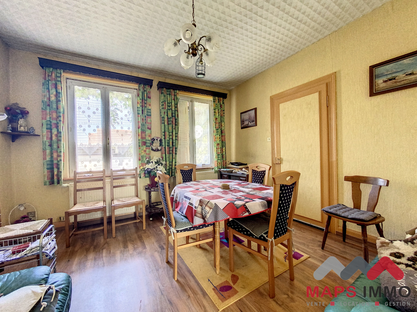 La maison d'habitation principale d'environ 120m2 habitables sur 1 niveau se décompose comme suit : une salle de bains avec WC, une cuisine, 3 chambres, 1 salon, 1 salle à manger.Un grand grenier, une cave et un agréable jardin en fond de parcelle viennent s'ajouter à ce bien.