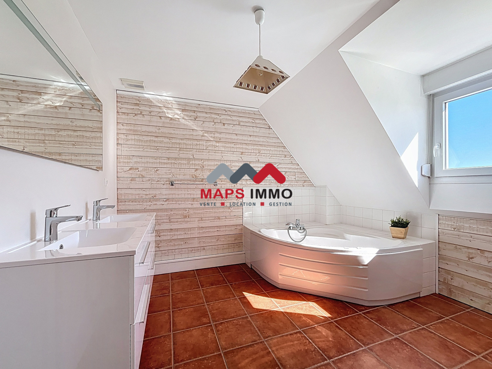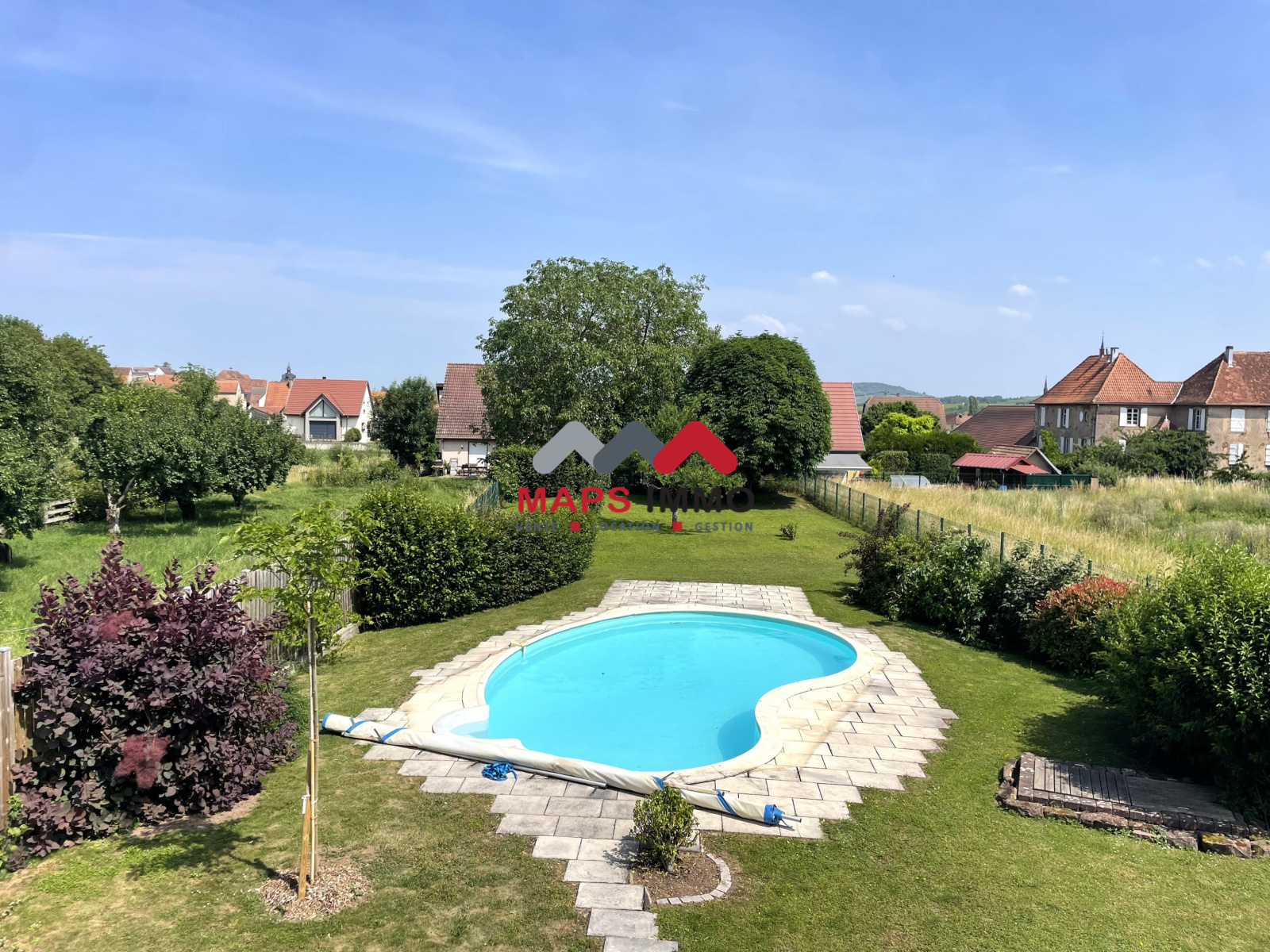 Nouvelle exclusivité Maps Immobilier ! Sur la commune de Westhoffen, magnifique situation pour cette spacieuse maison années 2000 de 7 pièces et 195 m² habitables. Sur un terrain de près de 16 ares, au calme, l'habitation se compose : Au rez-de-chaussée : - Une entrée donnant sur un spacieux espace salon-salle à manger d'une superficie de 68 m² agrémenté d'une cheminée. - Une cuisine séparée équipée avec son espace repas - Un bureau pouvant aisément être transformé en chambre - Un local technique ainsi qu'un wc séparé A l'étage : - Un dégagement donnant sur trois chambres - Une suite parentale avec sa salle de bain - Une salle d'eau avec douche, double vasque et espace buanderie. - Un wc séparé. L'extérieur, en deux temps, se compose quant à lui : A l'avant de la maison, un espace pavé pour le stationnement de plusieurs véhicules, une première terrasse avec un coin jardin intimiste et un garage double indépendant avec stockage. A l'arrière de la maison, vous profiterez d'un splendide espace entièrement clôturé et arboré de plus de 10 ares, comprenant une terrasse pavée, une piscine enterrée et le jardin. Un très beau bien dont le cadre, les prestations et l'état général sauront très certainement vous séduire. Pour toute demande de renseignements, votre contact : Raphaël JOST 07.88.06.41.30