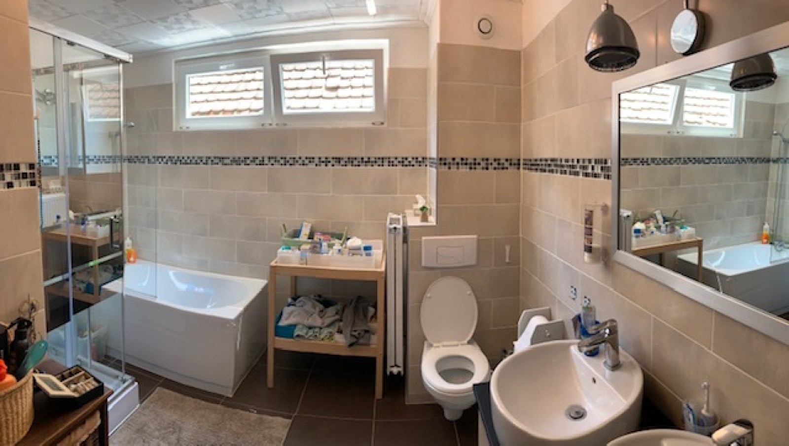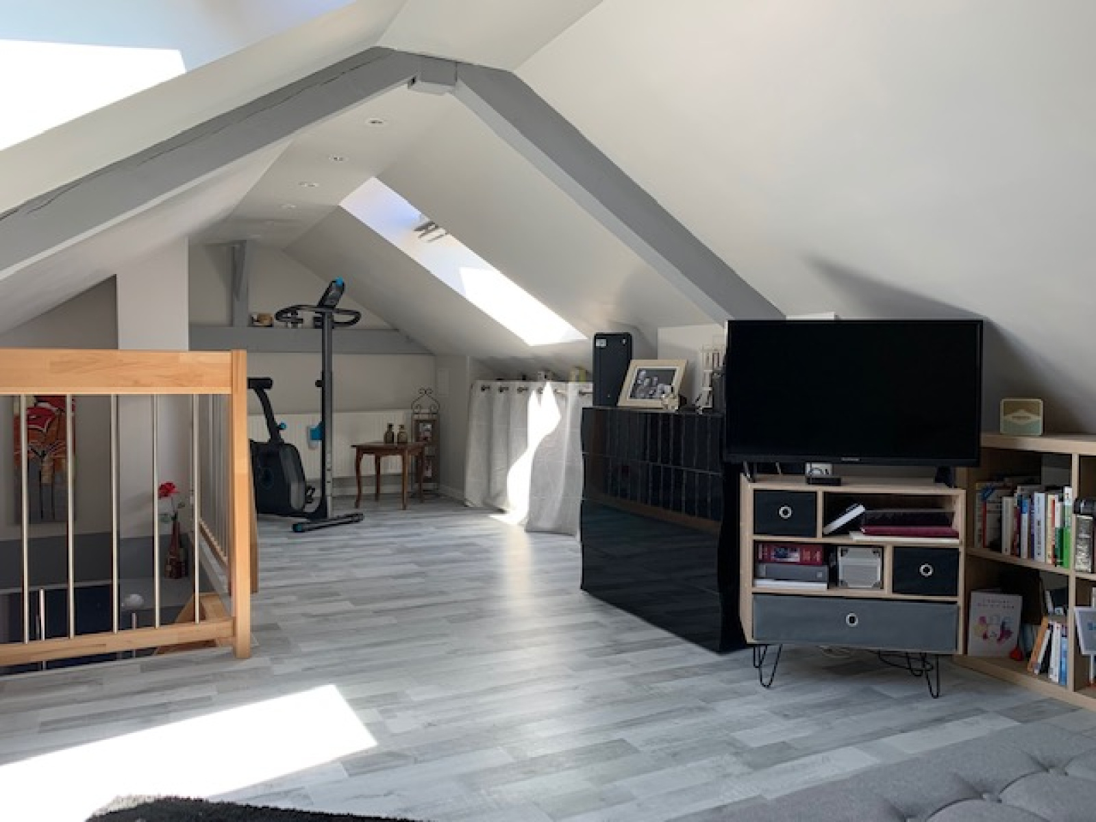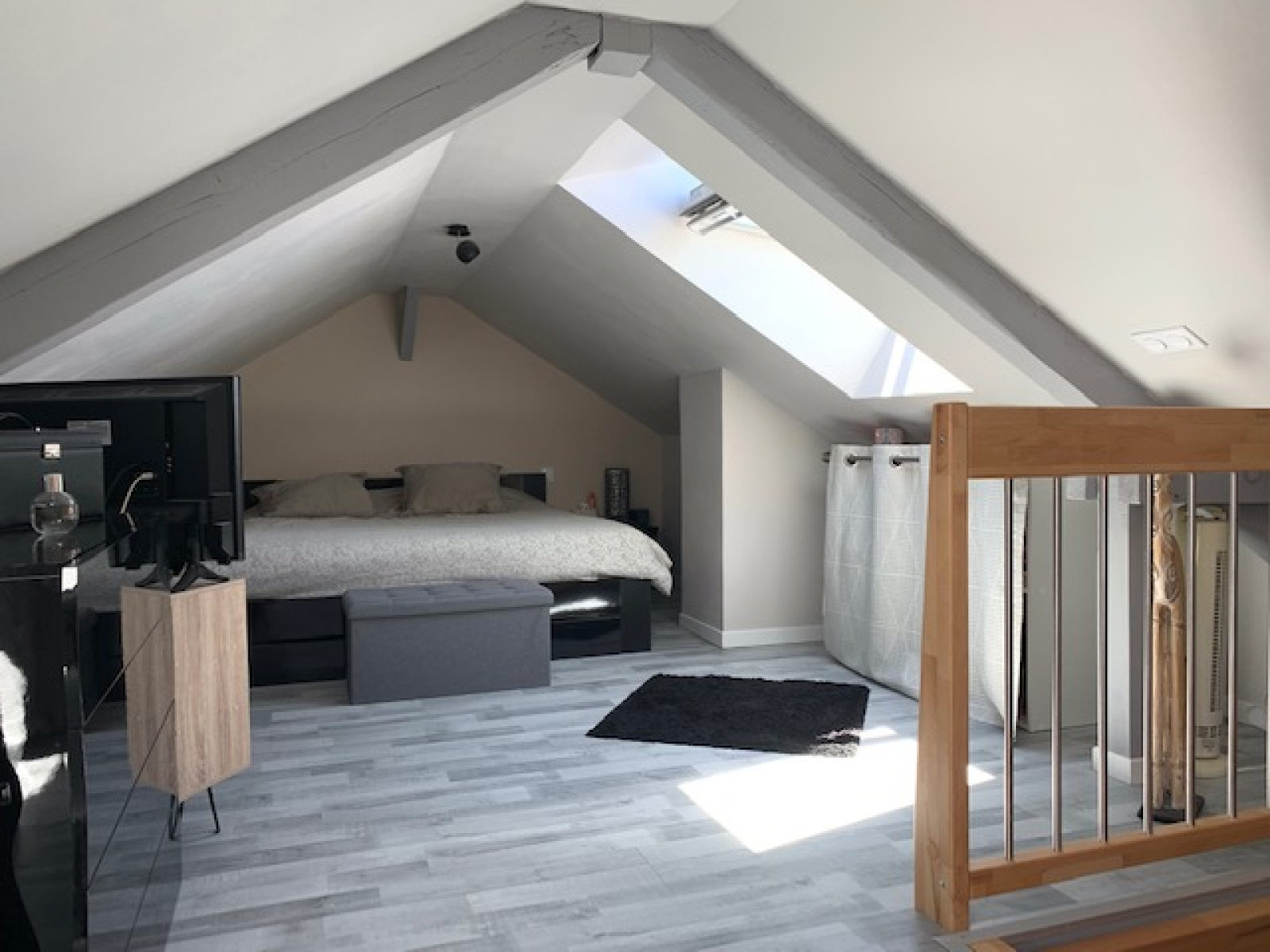 Le 2ème étage, mansardé, est aménagé en une suite parentale de 27 m² au sol.