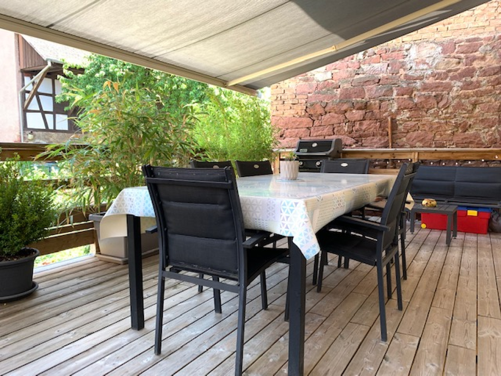 Au Rez de chaussé, un hall d'entrée suivi d'un dégagement, permet d'accéder à un bel espace de vie de 31 m², composé d'une cuisine tout équipée et d'une salle à manger, donnant accès à une belle terrasse bois de 25 m² équipée d'un grand store électrique. Un salon avec accès une seconde sortie terrasse, une salle d'eau avec wc et un second wc, complètent cet étage.
