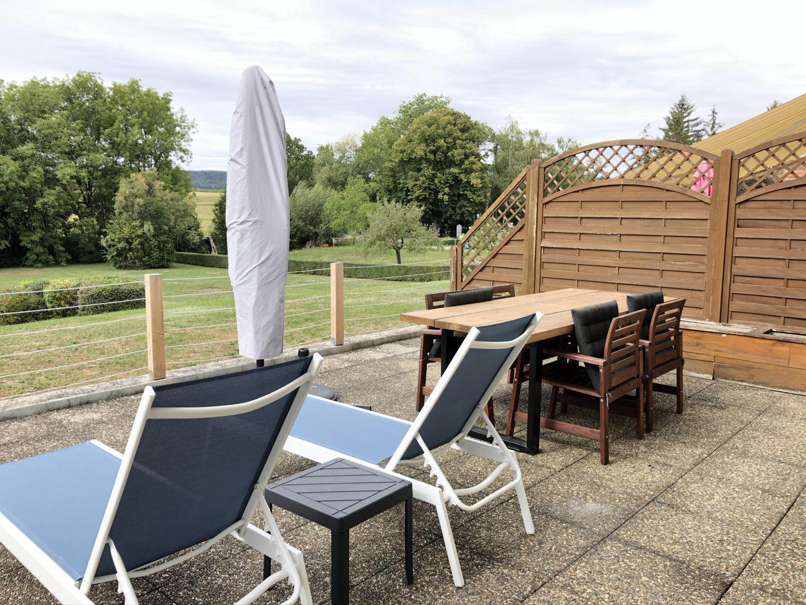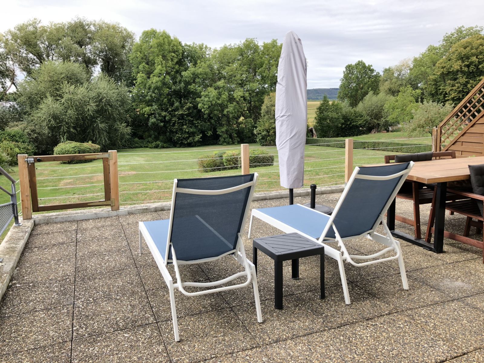 Une sortie au niveau du salon, dévoilera une magnifique terrasse de 36 m² avec vue dégagée sur la nature environnante.