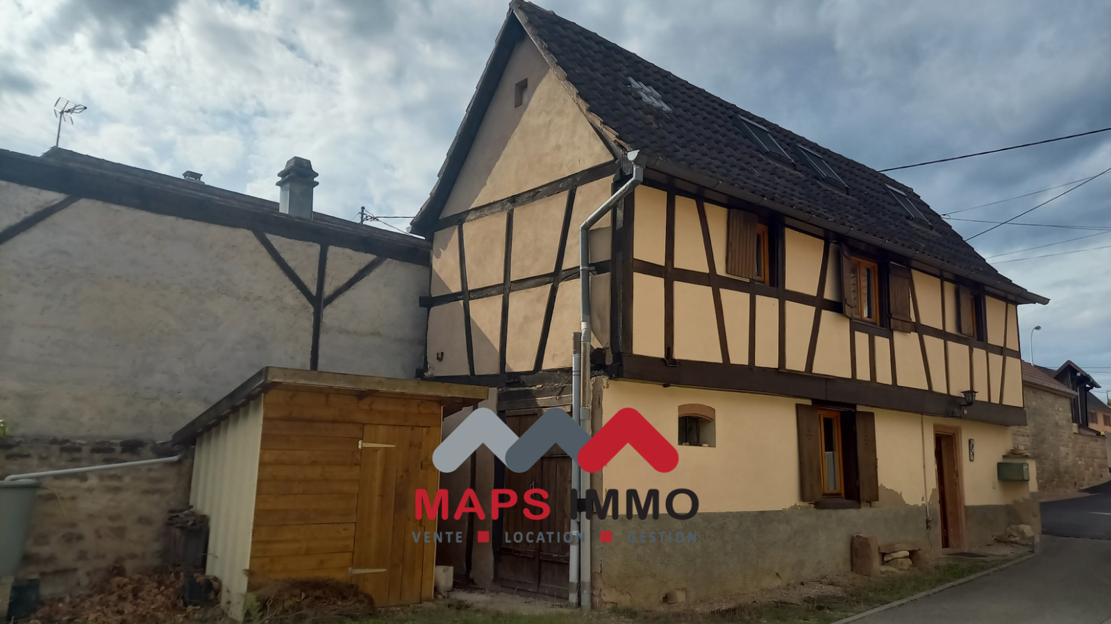 Nouvelle exclusivité Maps Immobilier. A 2 pas du centre du village, dans une impasse, charmante maison alsacienne construite en 1729 de 56m² environ; comprenant au RDC: entrée, coin cuisine, salon avec son poêle à bois, débarras de 8m² pouvant être utilisé pour agrandir le salon. Au 1er étage, 2 chambres en enfilade, douches et wc. Au 2e étage : grande pièce mansardée. Double vitrage récent. Travaux de rénovation à prévoir. 80m² de jardinet. Petit appentis de jardin. L'ensemble sur une parcelle de 145m². A voir absolument. Pour les visites: Laurent MATHIA 06.63.95.09.98