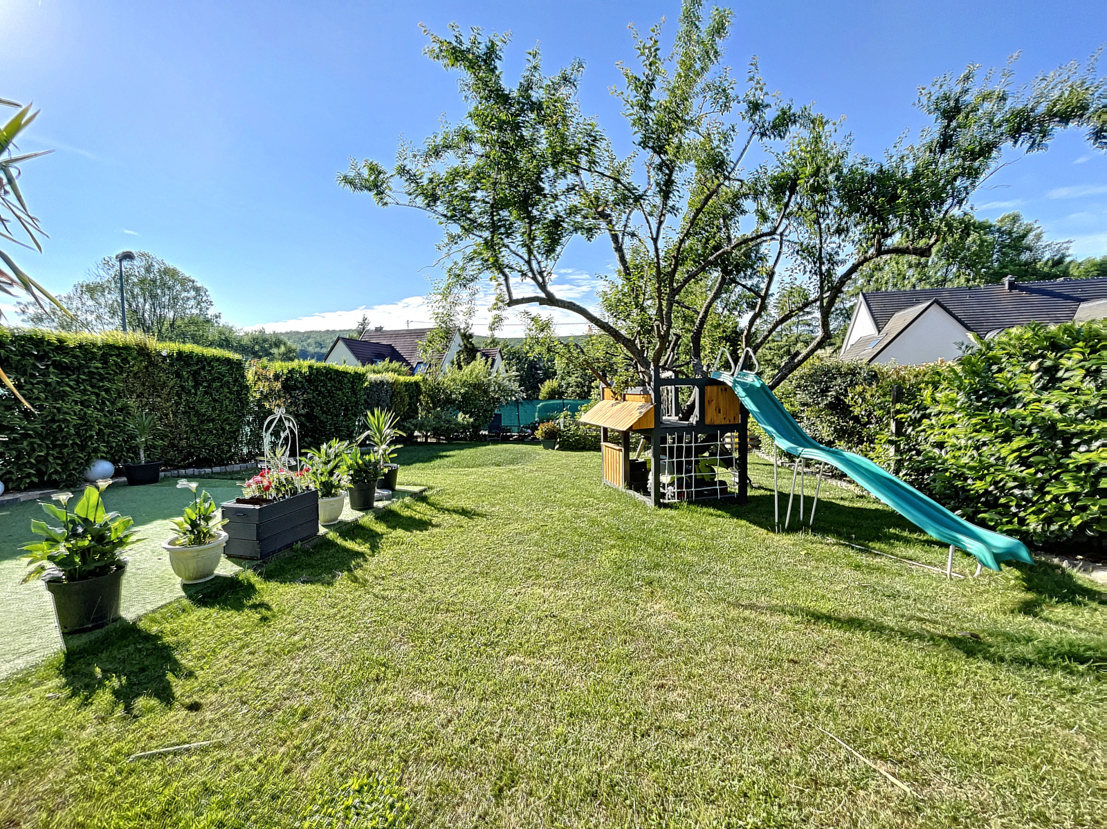 Maison de 2009, de 97 m² sur 5 ares de terrain, composée de :- Au rez-de-chaussée : Une entrée avec placards encastrés, un grand et lumineux espace salon/séjour ouvert sur une cuisine tout équipée et donnant accès à une belle terrasse de 27m².- Etage : Un palier desservant 3 chambres, 1 salle de bain avec wc. - Au Sous-Sol : Une Buanderie, 1 pièce supplémentaire chauffée (10,10 m²) pouvant servir d'une quatrième chambre, 1 garage.Un second wc au sous-sol.Un grand jardin entièrement clôturé et paysagé, une terrasse couverte ainsi qu'un carport pouvant accueillir 2 à 3 véhicules viennent compléter l'ensemble.