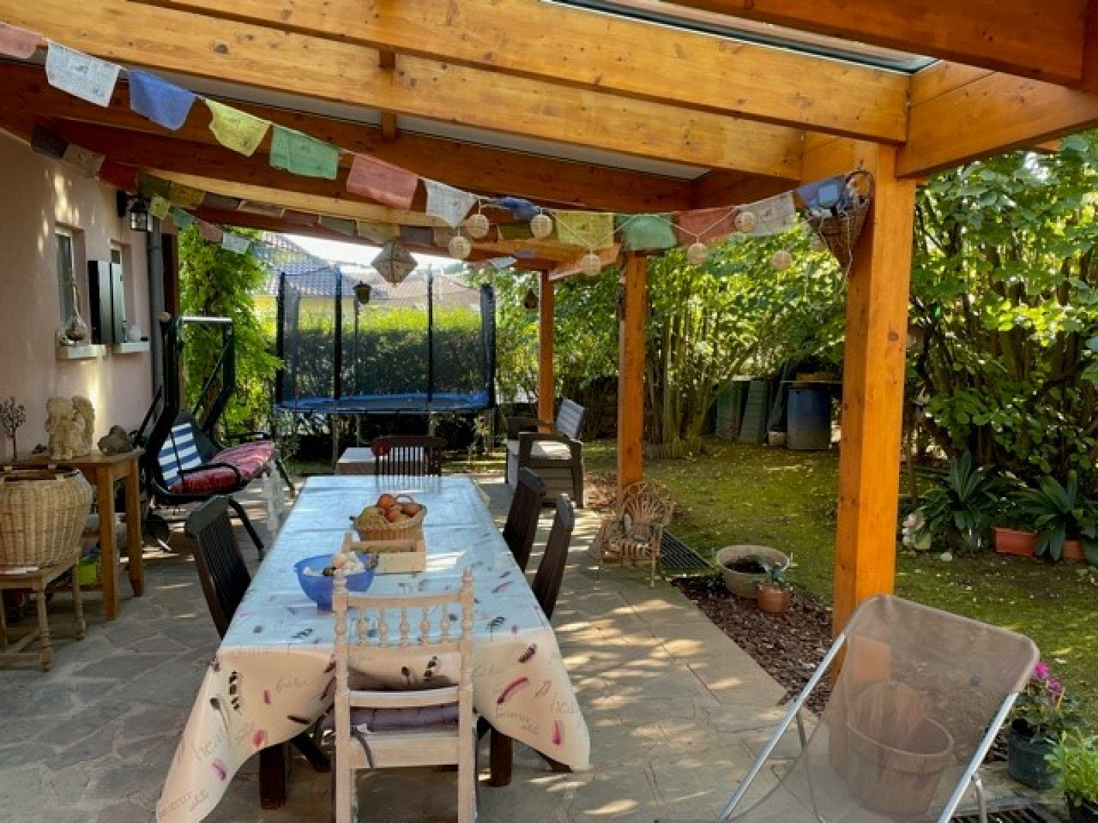 L'extérieur, joliment arboré, se compose d'une grande terrasse couverte de 25 m², d'un jardin orienté ouest, d'un carport et de 2 places de stationnement.