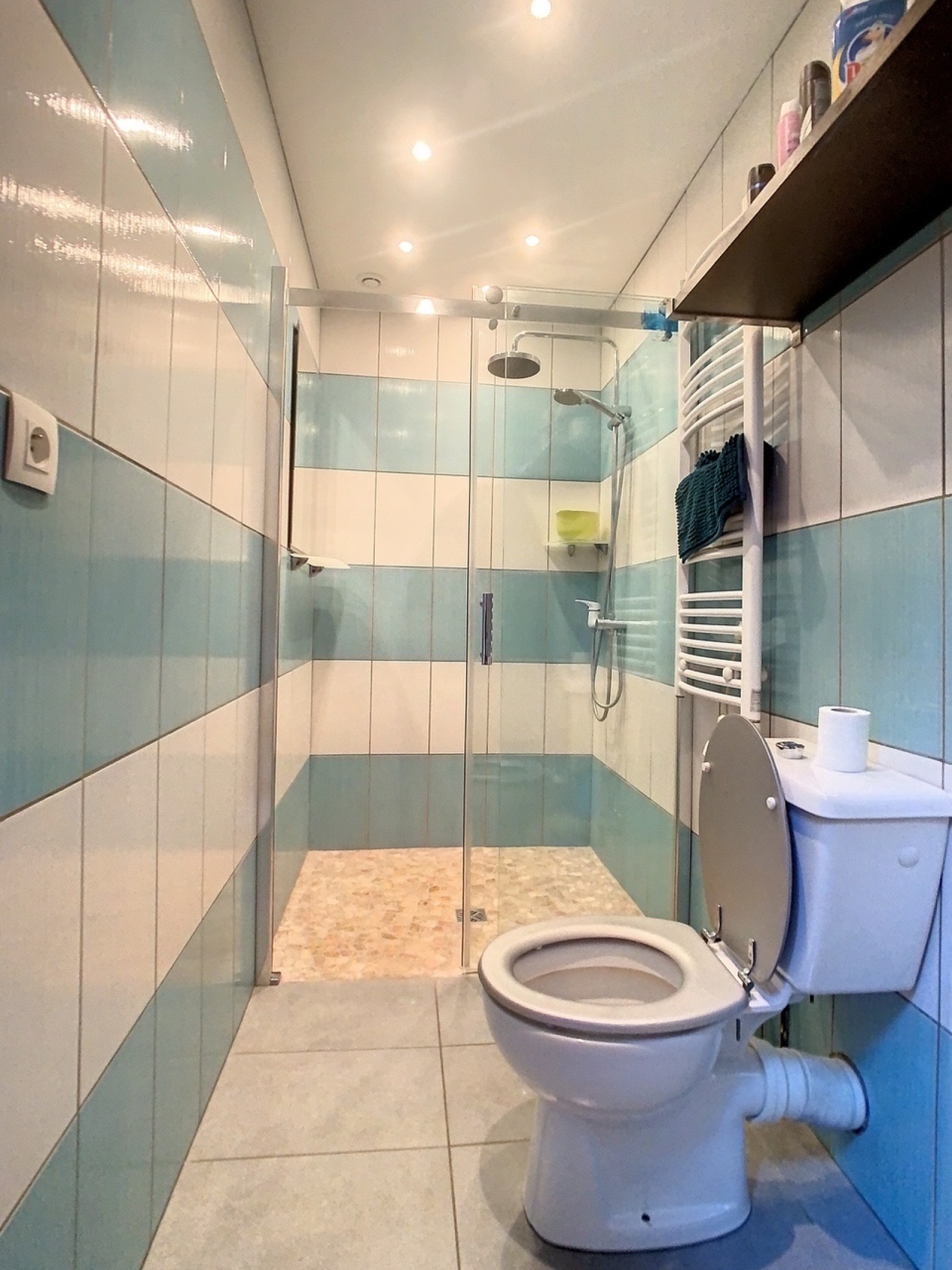 Le chauffage est électrique au sol + poêle à granules.