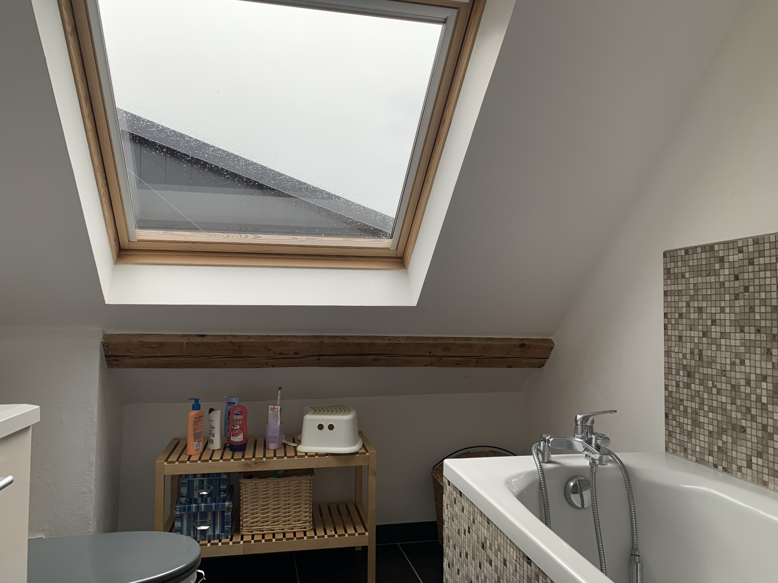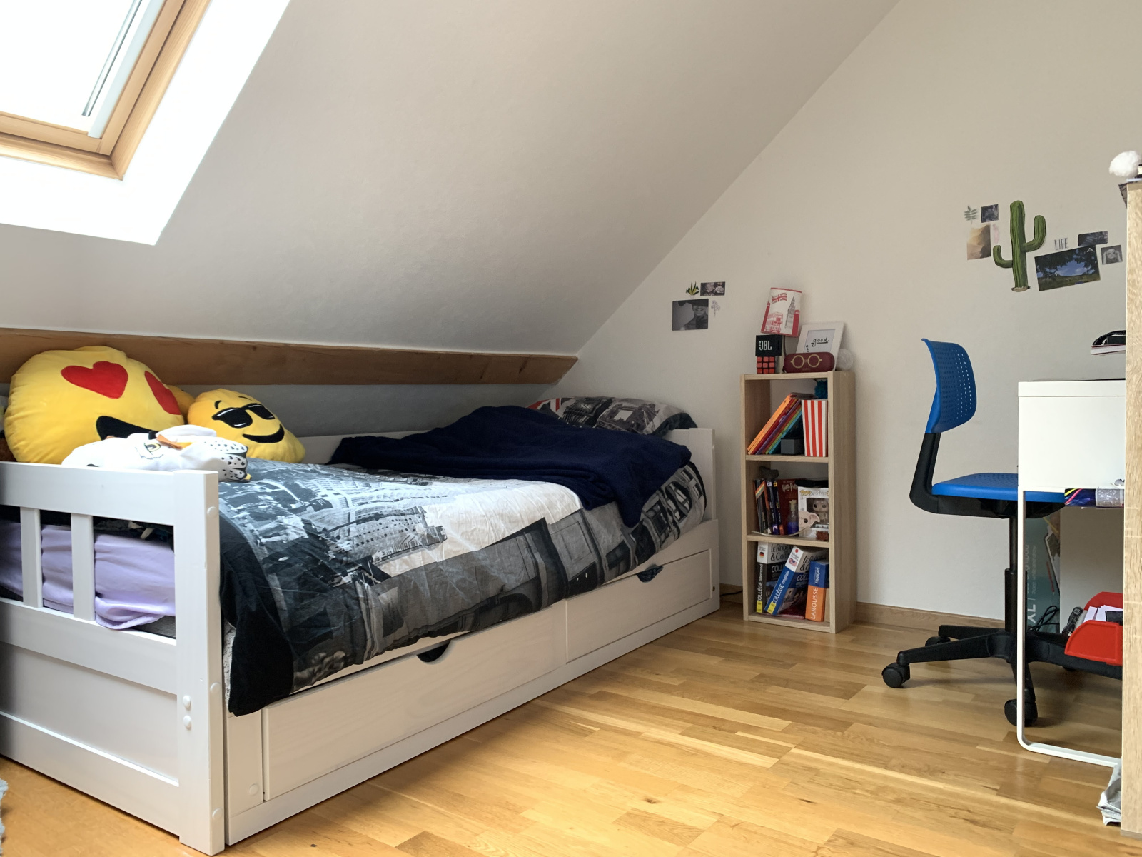 - A l'étage : Un grand palier aménagé en bureau permet d'accéder à 2 chambres et à la Salle de bain avec wc.