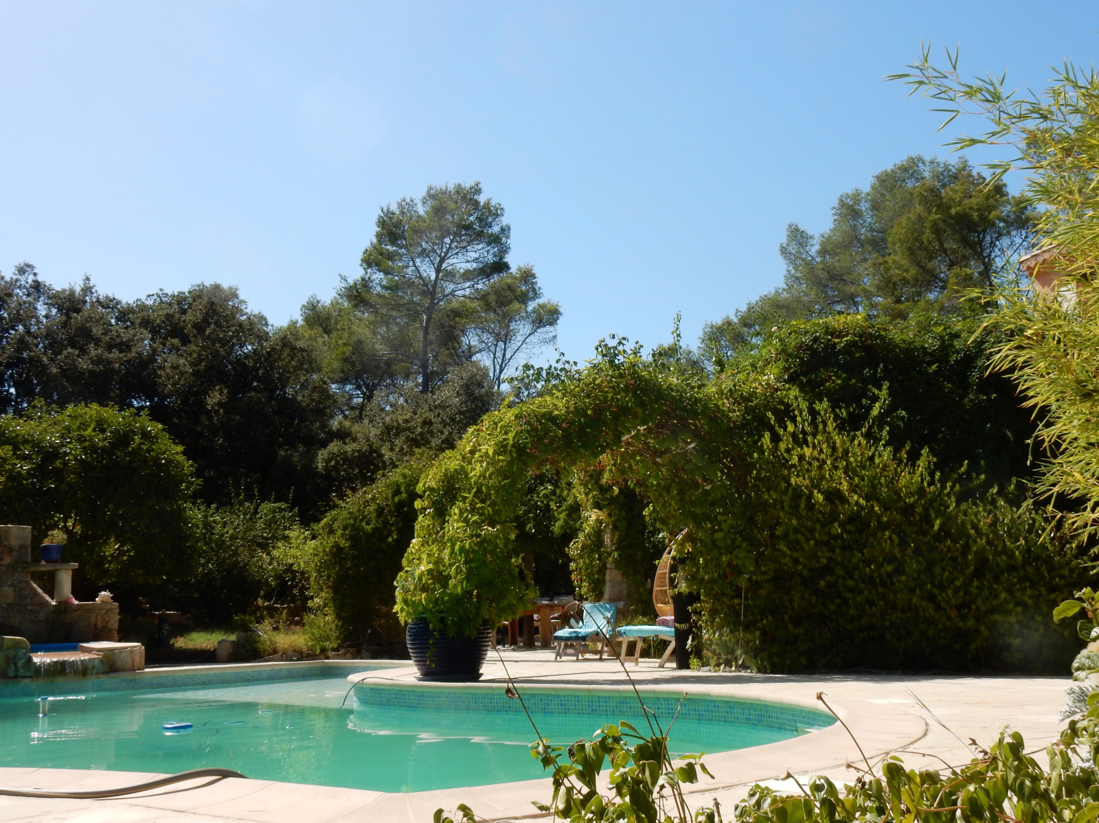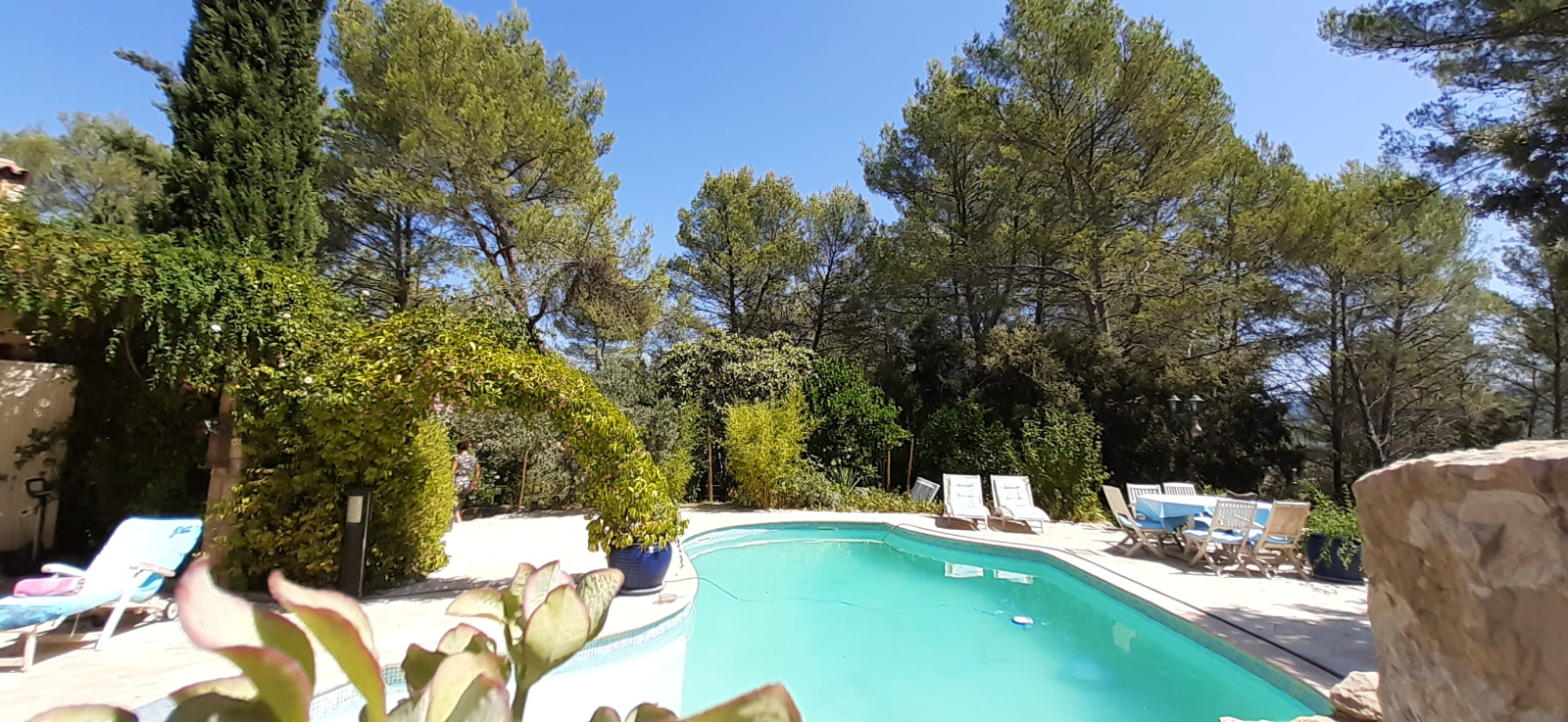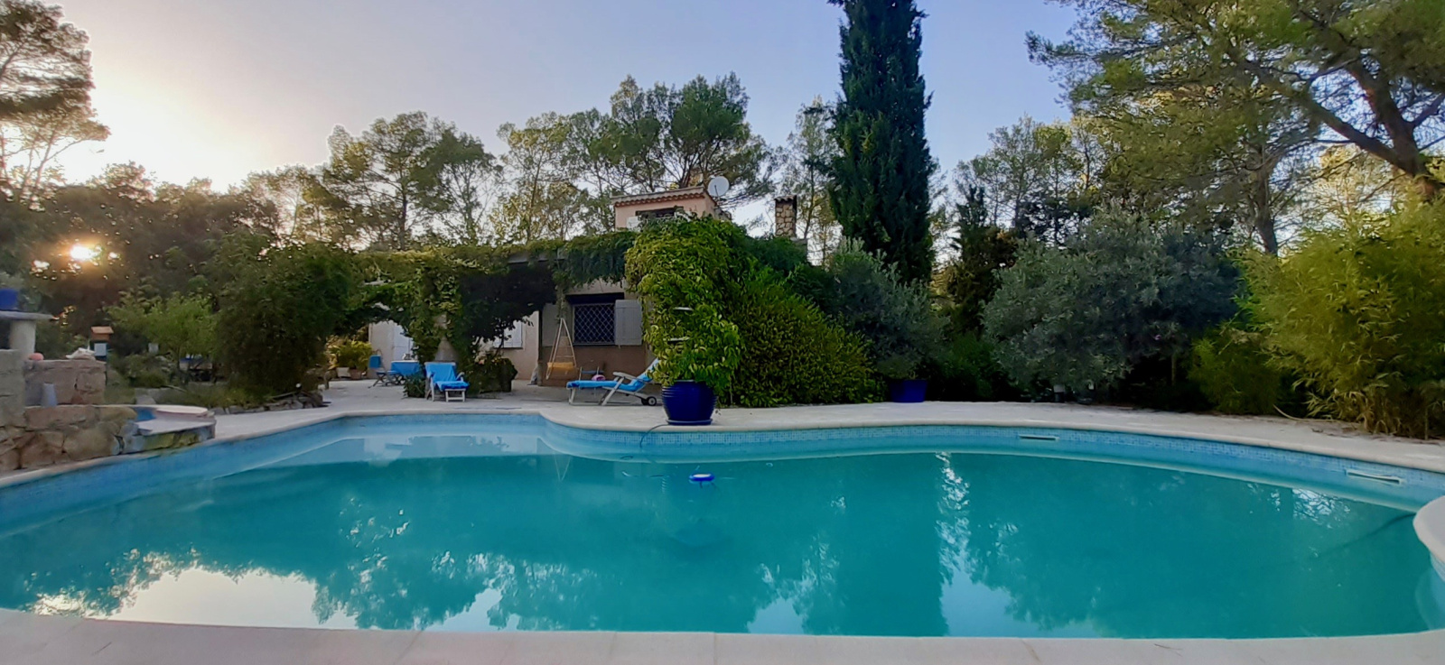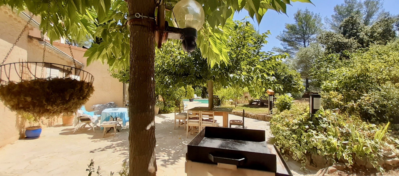 PIGNANS belle propriété d'architecte 6 pièces de 159 m² de plain-pied sur un terrain de 53,80 ares arboré et très bien entretenus situé dans un écrin de verdure aucun vis-à-vis et imprenable vue dominante sur le village de Pignans et le massif des Maures. Excellente prestation associant calme et caractère - rare à la vente ! Au sous-sol : 1 Atelier, 1 pièce technique chaufferie. Rez-de-chausée : Une entrée spacieuse avec vestibule, une cuisine équipée aménagée avec cellier et séparée, un vaste séjour double de 50 m² avec puits de lumière naturelle et poêle à bois donnant accès sur la terrasse et au jardin, une suite parentale avec salle d'eau, un grand dressing séparé, 2 chambres avec dressing donnant pour l'une accès à la terrasse, une salle de bains équipée avec sèche serviette et un toilette séparé avec lave mains. Vous bénéficierez également d'un appartement 2 pièces mitoyen d'une superficie de 31 m² pouvant servir de salle de réception ou d'ebergement composé : D'une cuisine équipée aménagée et séparée, une pièce et une salle de bains avec toilette et sèche serviette. Prestations supplémentaires : Climatisation réversible, cumulus solaire, piscine avec son système auto-nettoyant , jacuzzi, cabanon de jardin, stationnement nombreux plus un carport pouvant accueillir 3 voitures et un chenil. Taxe foncière : 1 785 €. DPE : D et GES : C. Chauffage : Fioul. Si ce bien vous intéresse contactez Vincent Mitar, agent commercial, au 06 36 04 06 76 ou par mail vmitar@maps-immo.fr